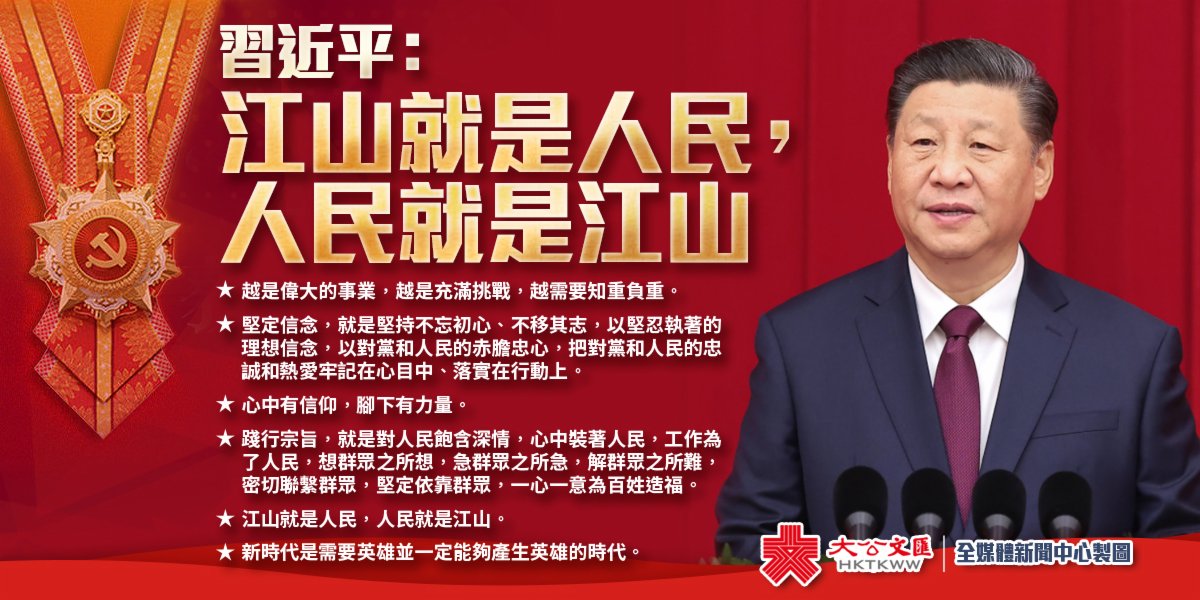 大公文匯全媒體報道,慶祝中國共產黨成立100周年「七一勛章」頒授儀式於今日(29日)上午在人民大會堂舉行,中共中央總書記、國家主席、中央軍委主席習近平首次頒授「七一勛章」並發表重要講話。習近平指出,一百年來,中國共產黨矢志踐行初心使命,團結帶領人民開闢了偉大道路、建立了偉大功業、鑄就了偉大精神、積累了寶貴經驗,在中華民族發展史和人類社會進步史上寫下了壯麗篇章。習近平諄諄告誡全黨,江山就是人民,人民就是江山。