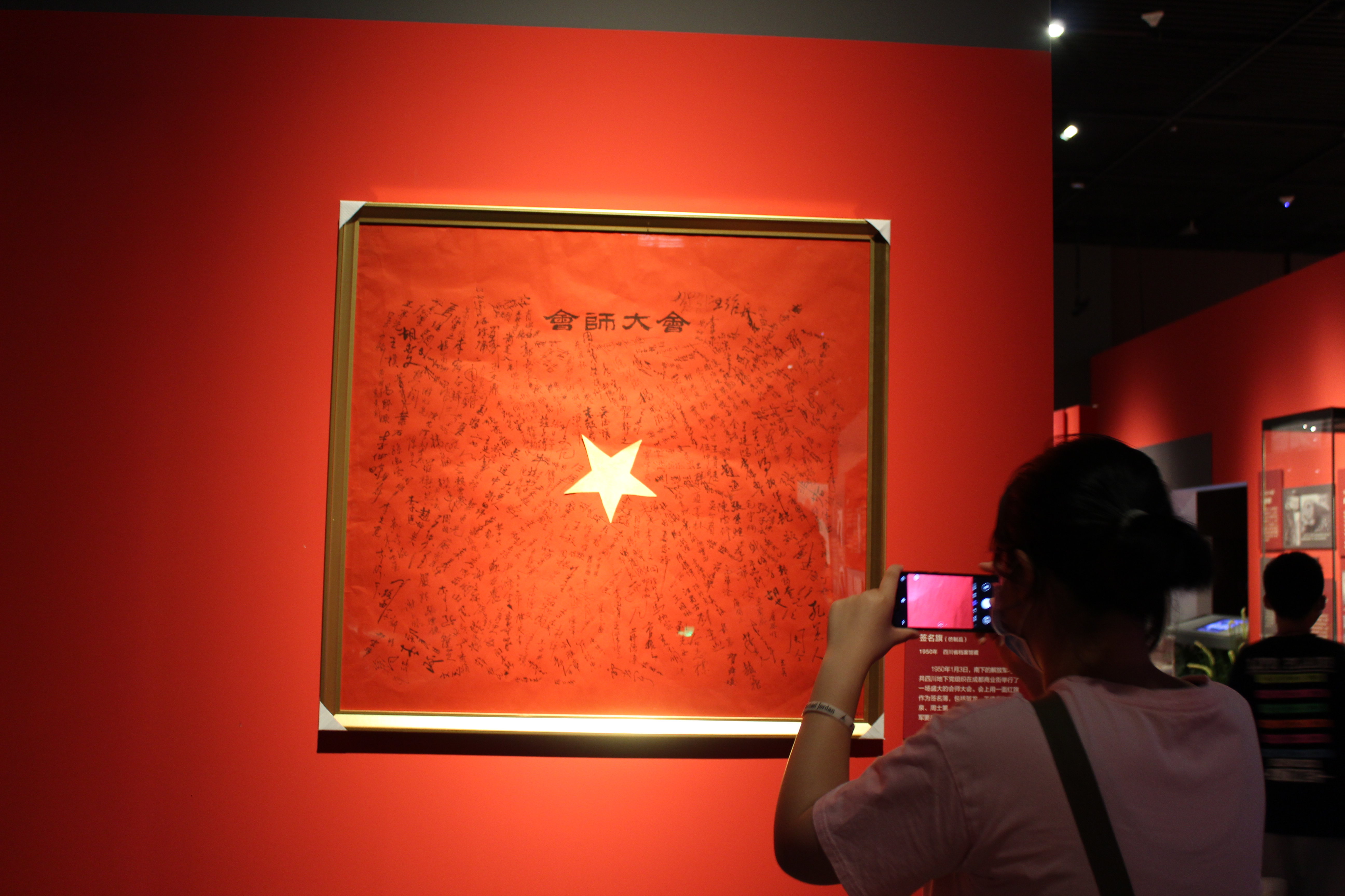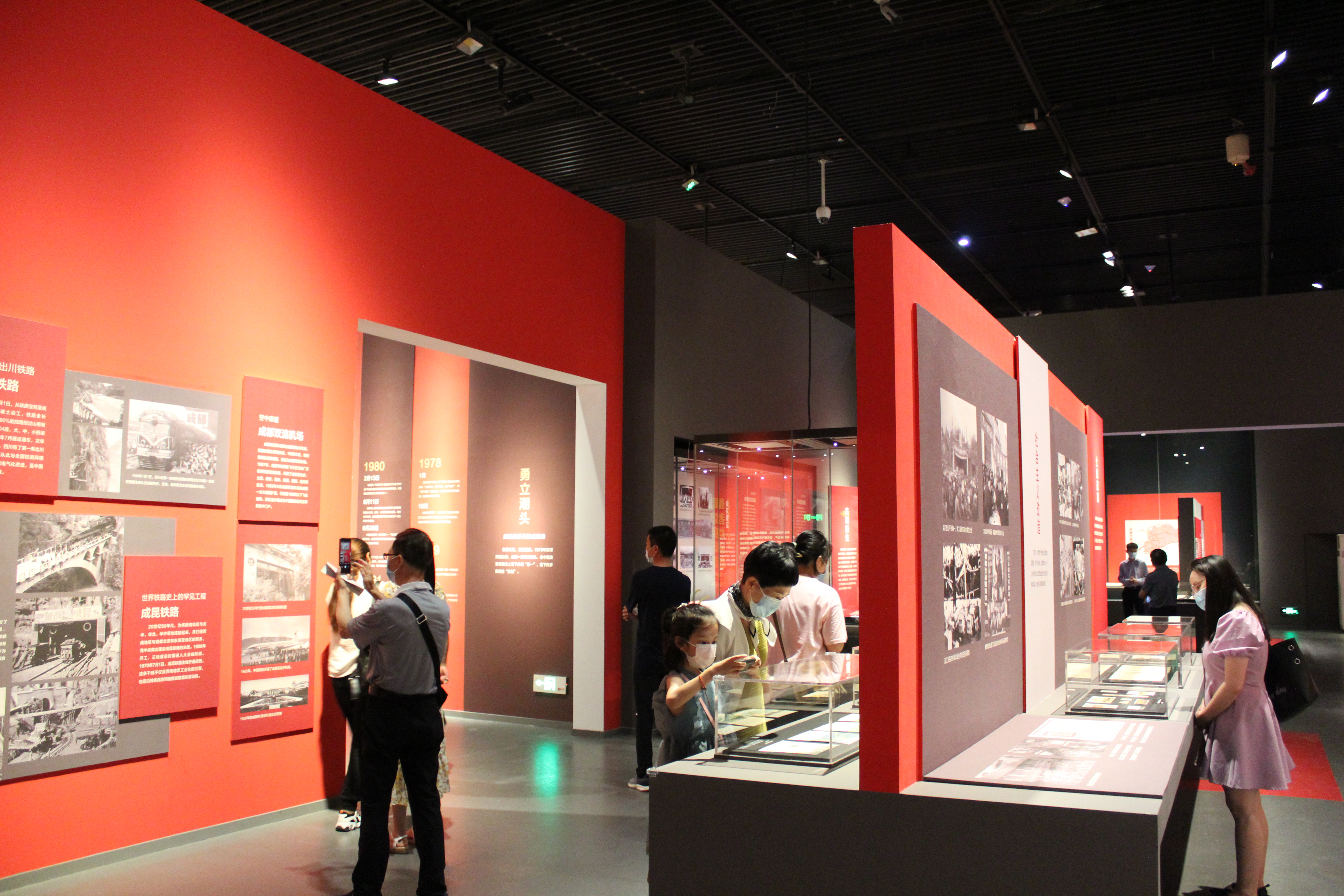 在「革命歲月」「建設年代」「改革篇章」「奮進新時代」四個篇章裏,「1955年成都市第一刺繡生產合作社入社申請書」「汶川地震搶險救災戰士寫在挎包上的遺書」「成渝鐵路通車紀念章」、瀘定橋等四川印記,趙一曼、江竹筠等川人先烈的遺物,以圖文形式充分展現出百年歷程中的四川力量。