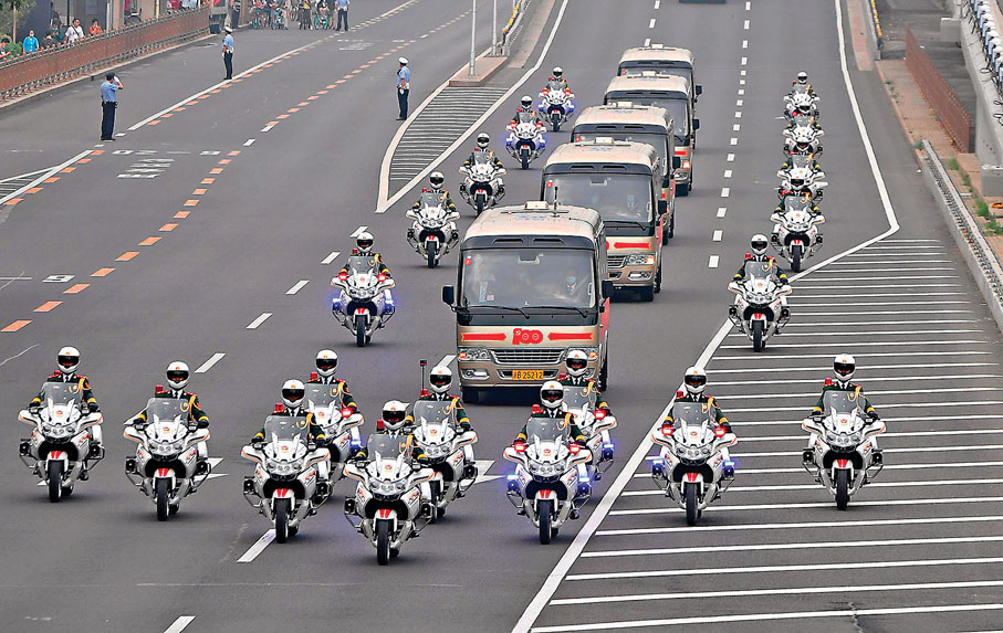 6月29日一早,威武莊嚴的國賓護衛隊駛上北京開闊的大街,他們護衛的禮賓車正開往人民大會堂。車裏乘坐着「七一勳章」獲得者。