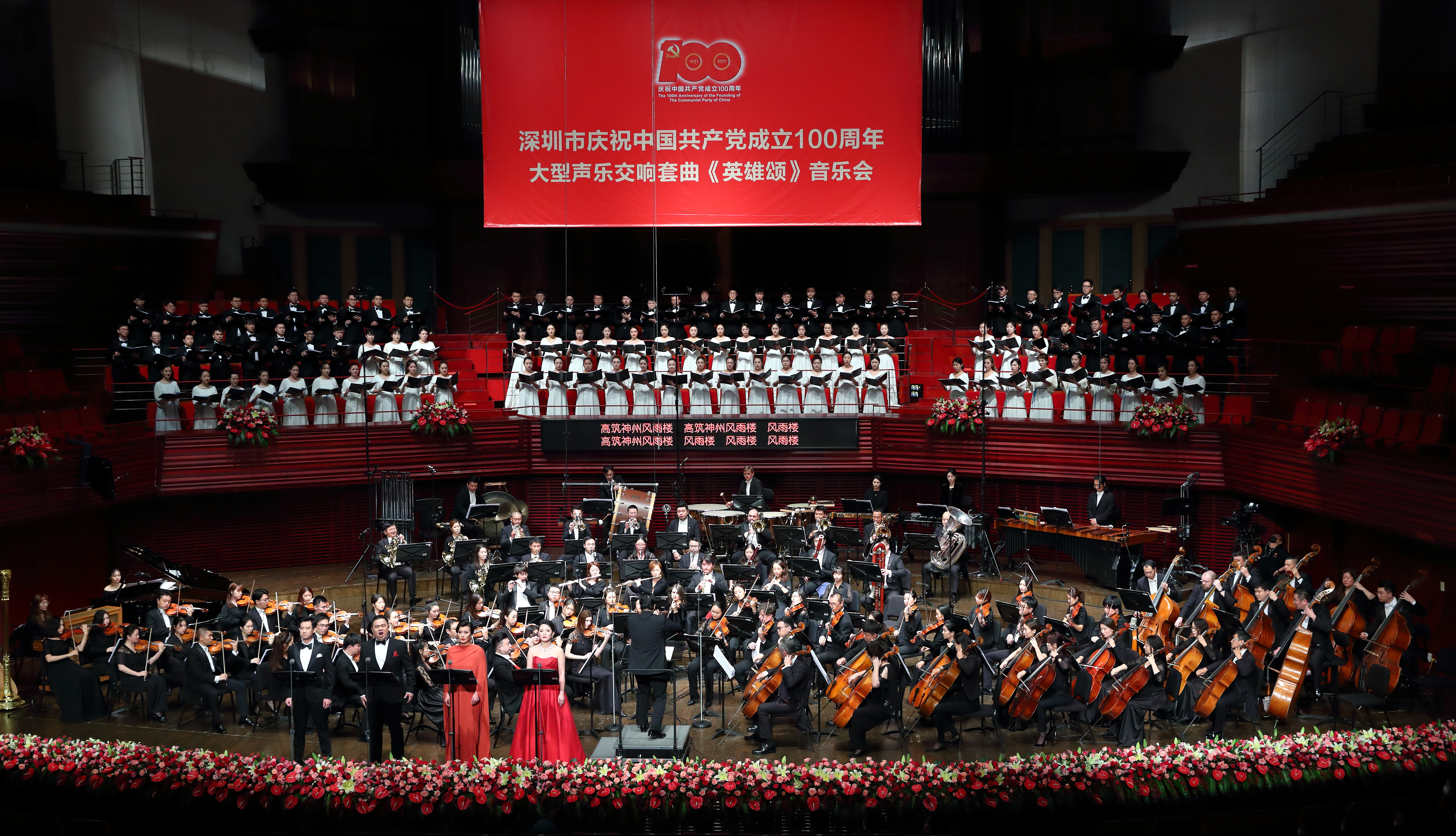 (大公文匯網 記者 黃仰鵬)6月30日晚,一部以音樂描繪百年黨史、以藝術弘揚英雄精神的大型聲樂交響套曲《英雄頌》在深圳音樂廳進行首演,慶祝中國共產黨成立100周年。據悉,《英雄頌》成功首演之後,將進一步潤色提升,於9月赴京演出,並陸續在國內和海外展開巡演。