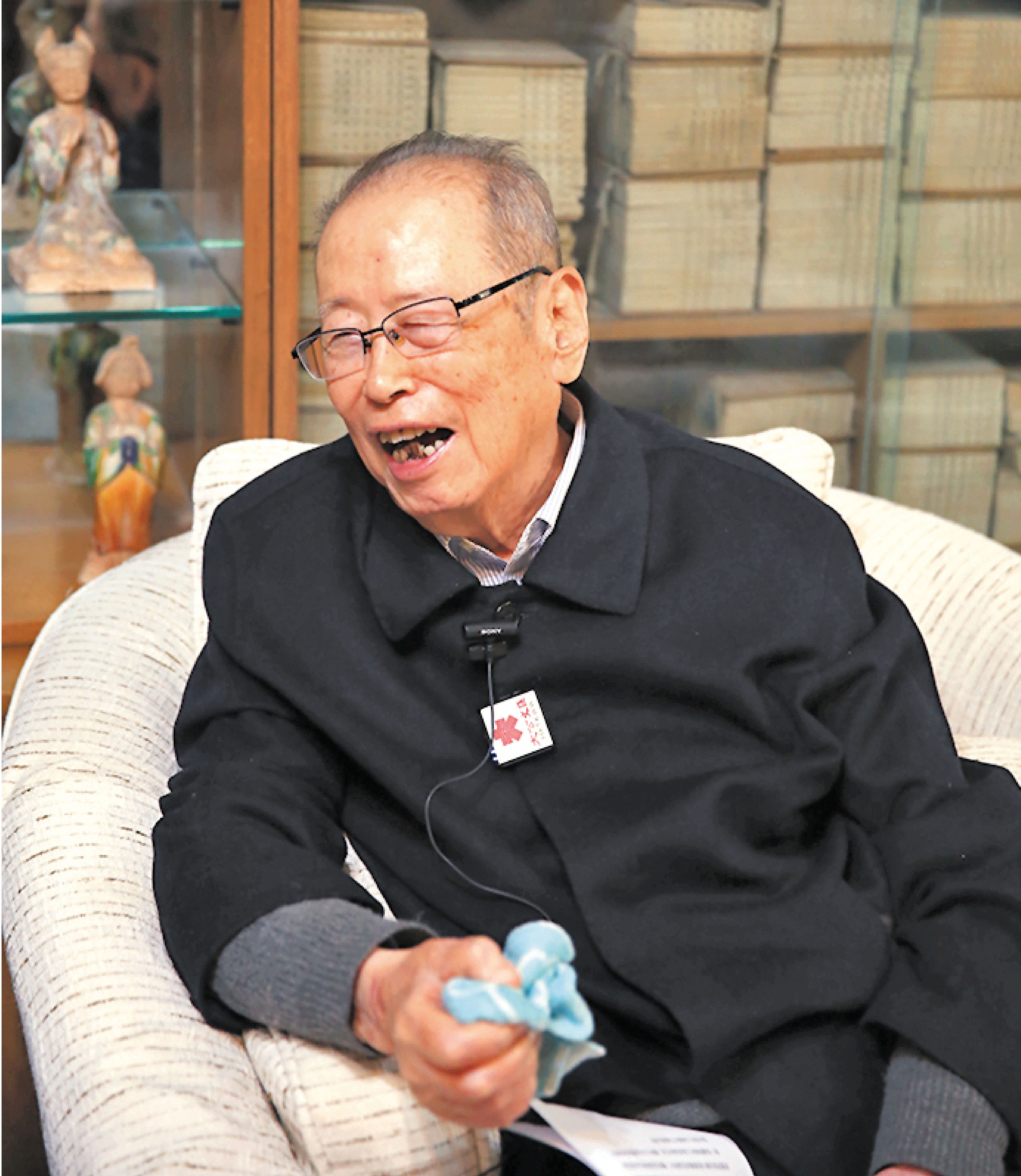 初夏的北京氣溫宜爽,上午時分陽光正好。藏藍薄呢夾克,黑色細邊眼鏡,周南坐在寓所一面線裝書牆前的沙發上,就如同一幅現代版高士圖,更透出他的風清骨峻、儒雅闊達。離休後的周南一直關心香港時局和繁榮穩定,每天都要翻閱一兩港版報刊。