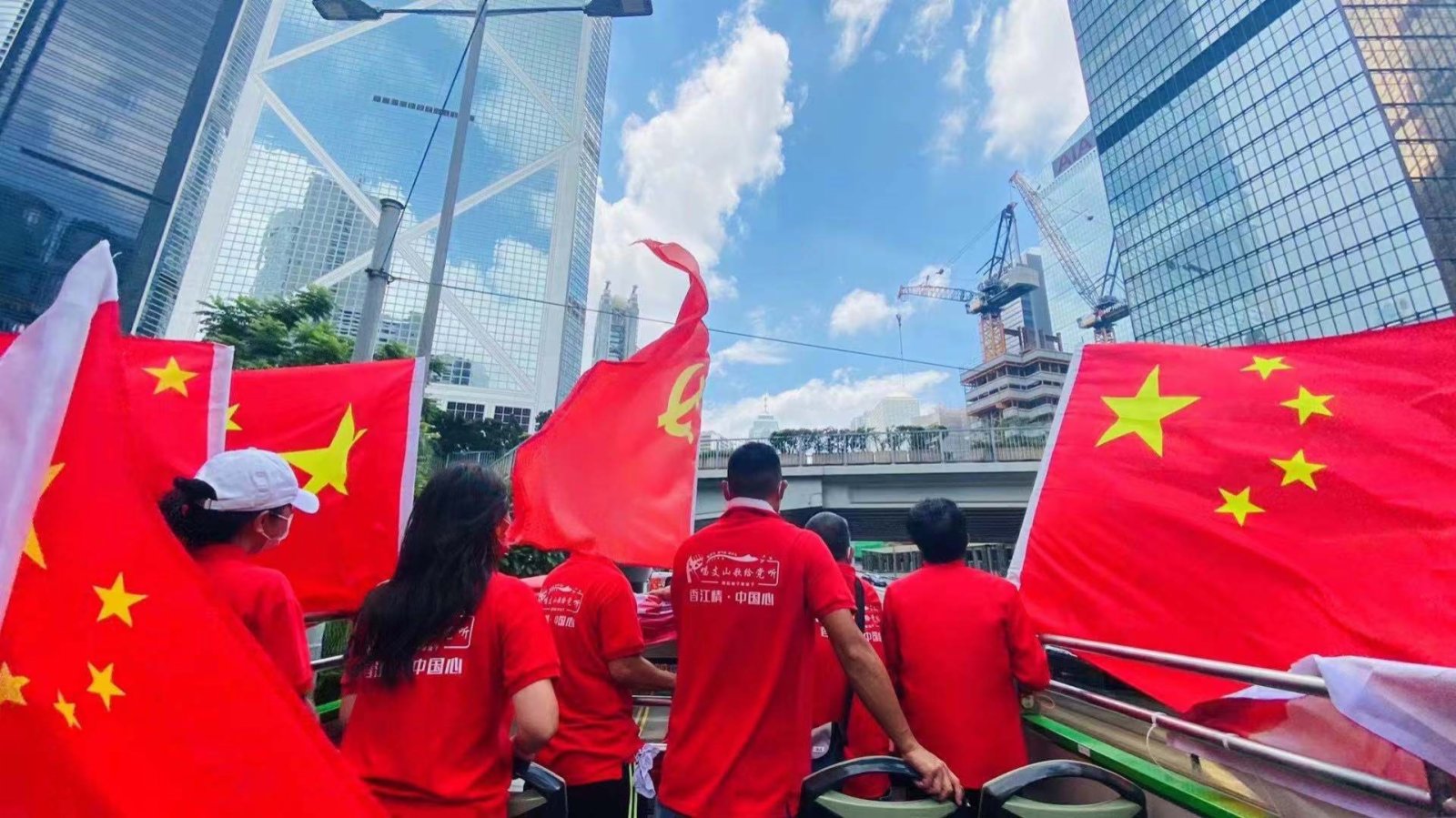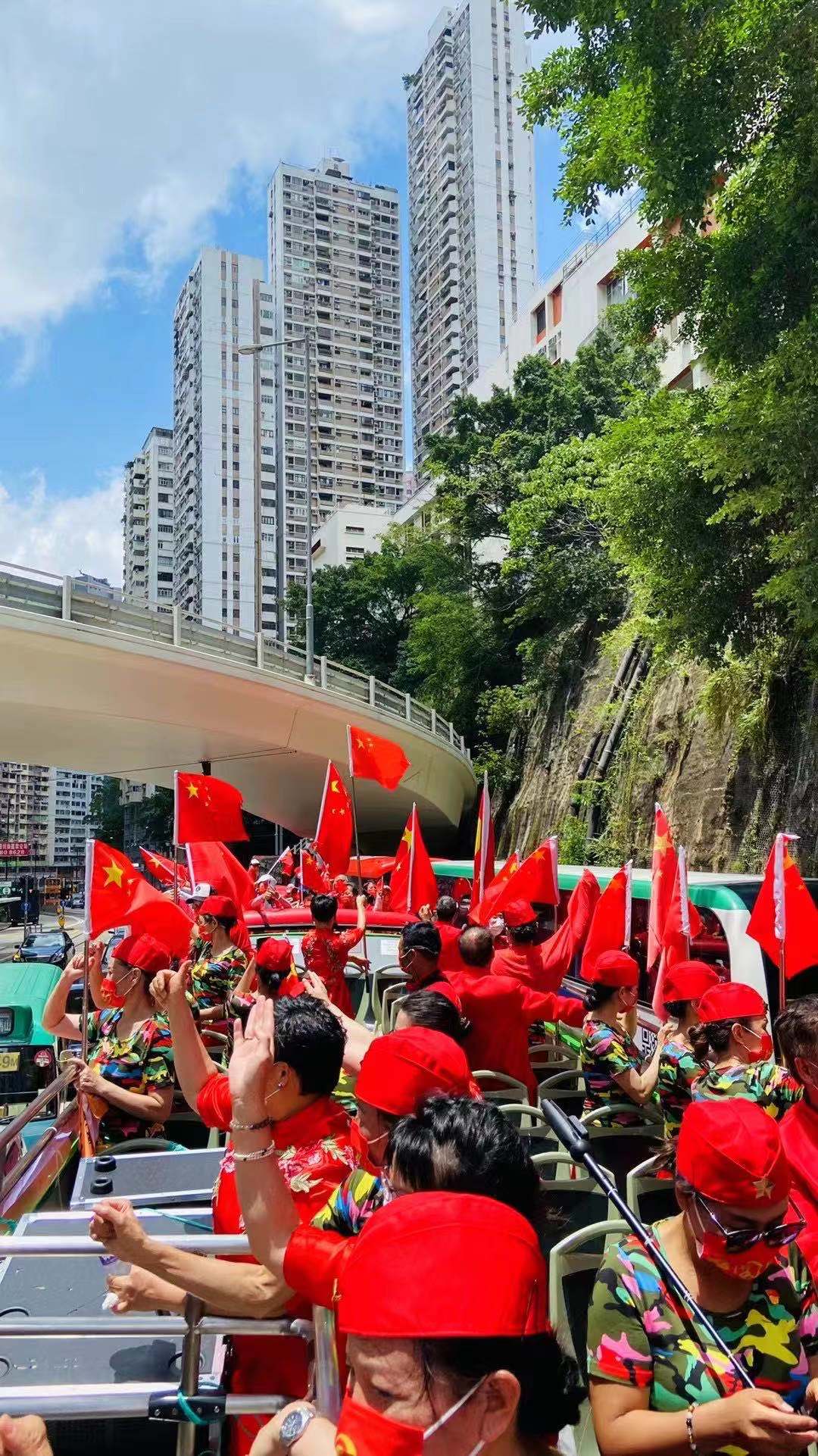 大公文匯全媒體報道,正值中國共產黨成立100周年以及香港回歸24周年普天同慶之際,民間團體「香江情·中國心」社團一眾人士,今日(7月1日)包車巡遊,從元朗出發至港島中環,與沿途市民共慶「雙喜」。