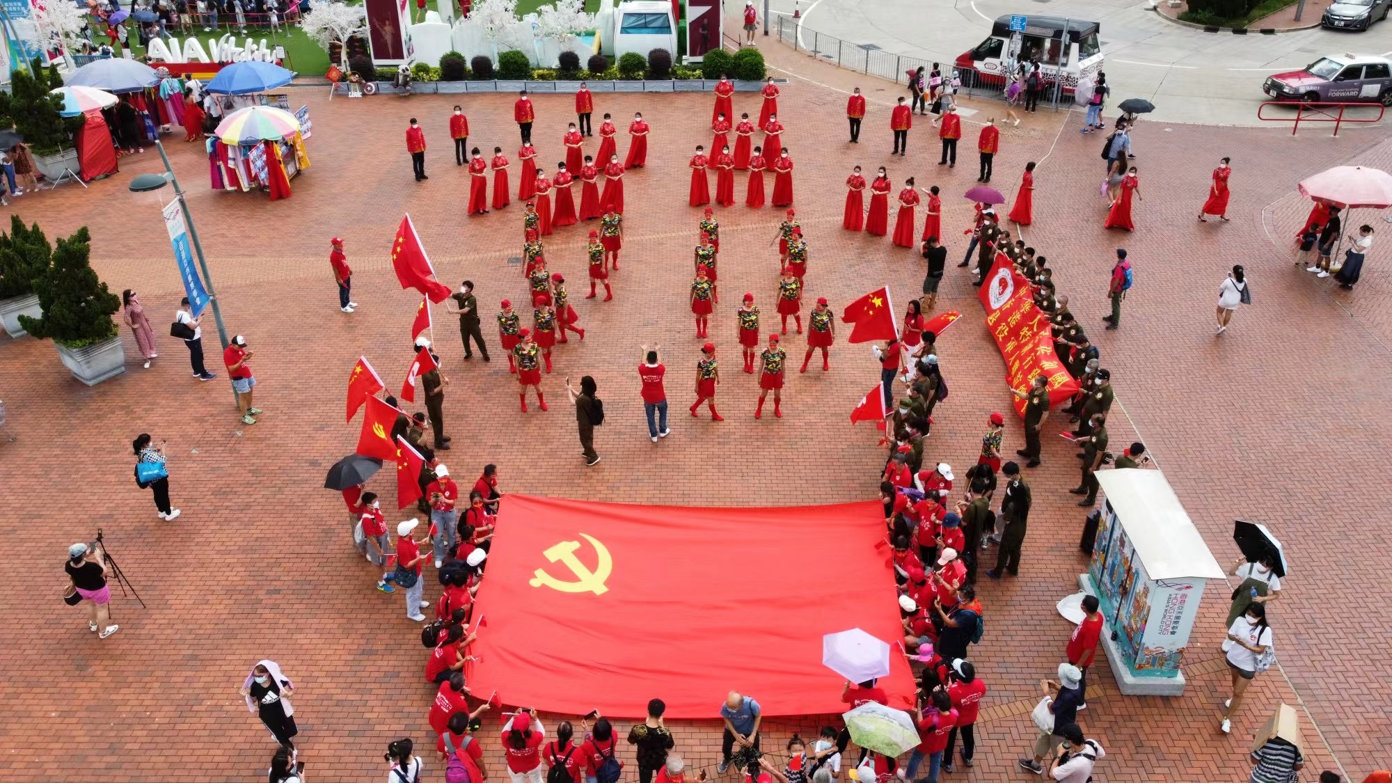 下午,團體在中環海濱廣場自發舉行歌舞表演,與香港市民一起分享建黨百年喜悅。