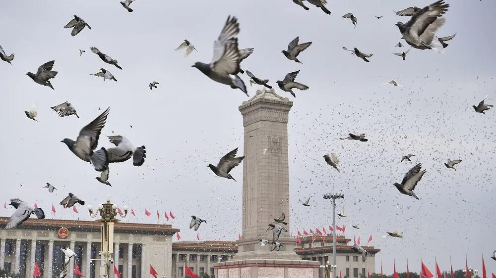 這次放飛對鴿子們的難度不大。天安門廣場離北京最遠的地方大概50公里左右,它們很容易找到家。這些徵集的鴿子都是參加過比賽的,比如500公里、1000公里的比賽。