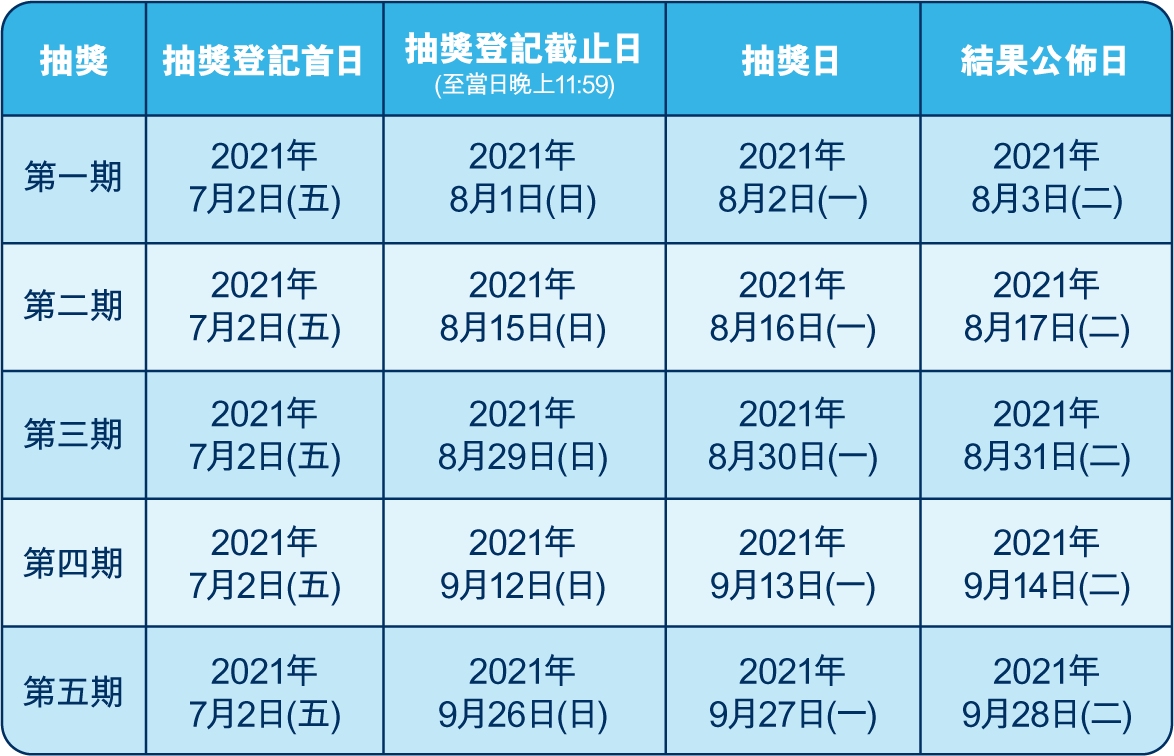煤氣公司指,凡於登記抽獎前已年滿18歲並持有香港身份證的人士在香港完成接種一劑或兩劑新冠疫苗均可參加是次抽獎。是次大抽獎共有5期,越早登記中獎機會越大。每位合資格參加者只須登記一次,若於上一期沒有中獎的已登記市民,將自動進入下一期抽獎。
