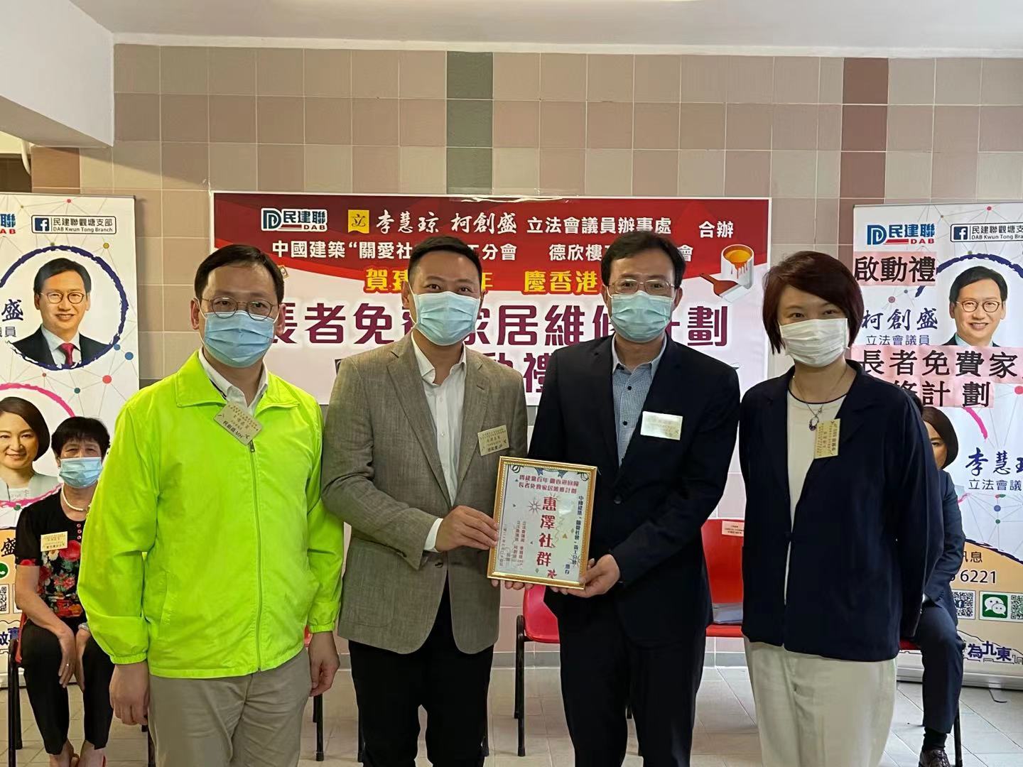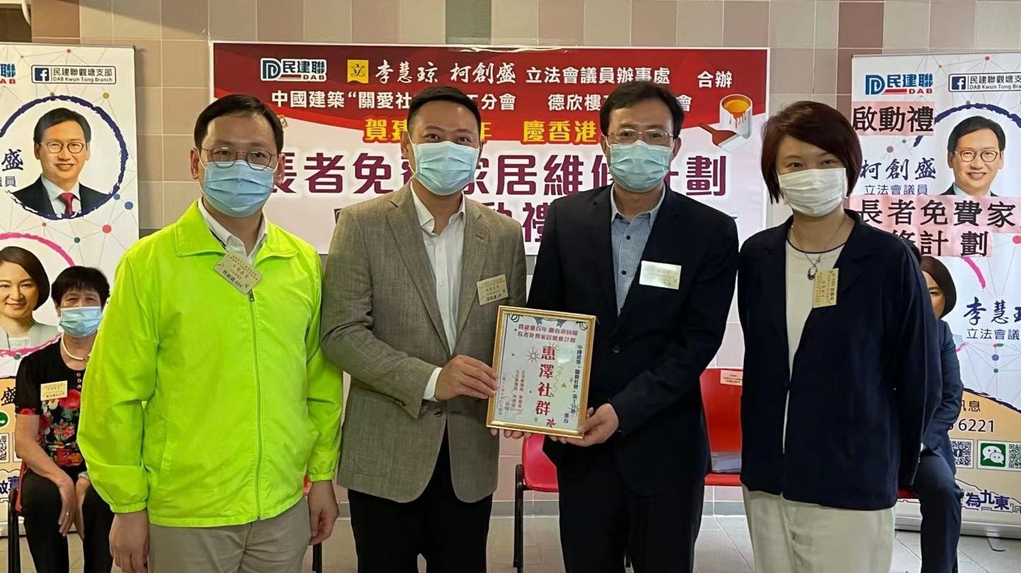 大公文匯網報道,九龍東有不少基層的獨居或雙獨居長者住戶,因為年老或貧困,未能自行改善日久失修的單位。適逢中國共產黨成立一百年及慶祝香港回歸祖國24周年的大日子。有見及此,立法會議員李慧琼及柯創盛表示,有幸獲得中國海外集團及中國建築工程全力支持,發動社區資源與力量,組成義工隊為區內有需要或獨居無依的長者,為他們提供義務的家居改善指導及家居維修服務。