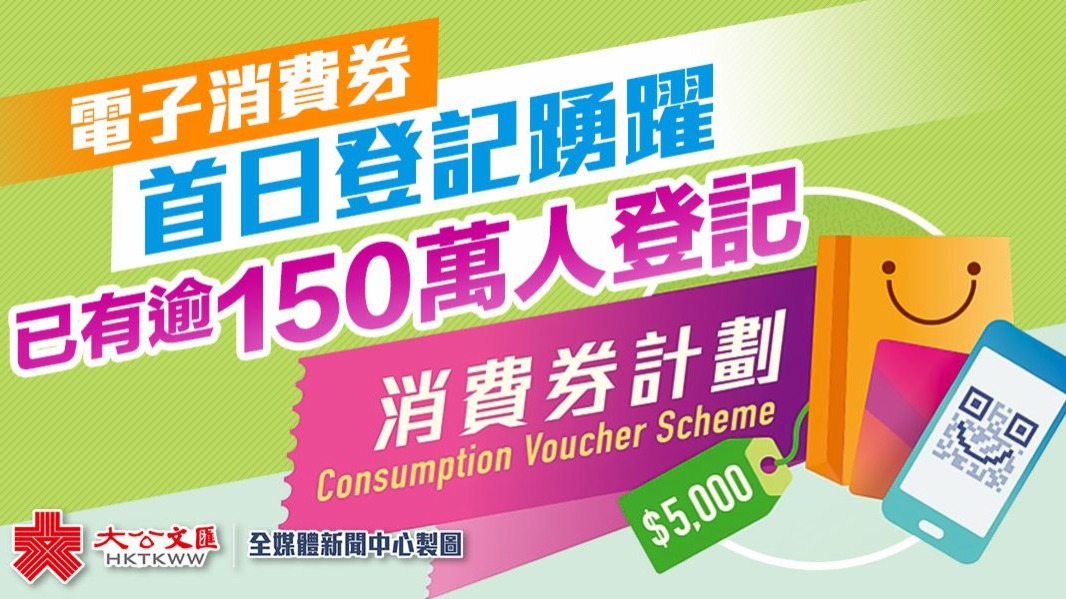 大公文匯全媒體報道,香港特區政府今日(4日)公布,電子消費券計劃首日登記運作大致順暢,市民反應熱烈。截至今日下午6時,共有約155萬名市民經計劃網站進入登記平台遞交電子登記,其中超過130萬名登記人士利用申領去年現金發放計劃的資料回答相關保安問題作身份認證,過程簡便,無須輪候。至於透過「智方便」作身份認證,則因今早系統極為繁忙而一度出現障礙,情況在下午已開始逐步改善。