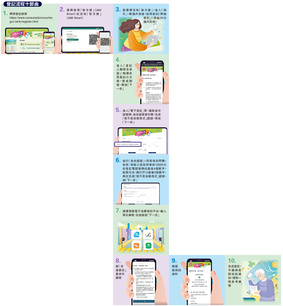 財政司司長陳茂波表示,大家毋須急於在首數天登記,只要在7月17日或之前完成電子登記,經核實資格後,便可同步於8月1日獲發放第一期消費券。至於選擇遞交書面表格的市民,可於今日(5日)起把填妥的表格連同香港身份證複本,於辦公時間投入設於各區共560個地點的表格收集箱,包括各郵政局及指定銀行。所有遞交書面表格,以及在7月18日或之後完成電子登記的人士,會於9月1日發放第一期消費券。
