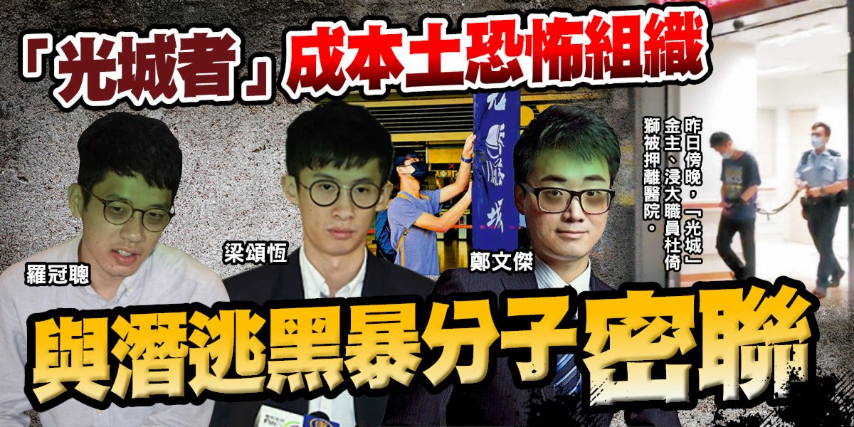 大公文匯全媒體報道,企圖策劃炸彈恐襲的「港獨」組織「光城者」於香港國安法實施後成立,在文宣上持續不斷地以「革命」為名,對外鼓吹和美化暴力。消息指被捕的「光城者」成員包括發言人阮嘉謙,16歲,中學畢業,報稱無業,阮平日在社交媒體出售其創作的「港獨」畫作。其他核心成員包括19歲蔡永傑(綽號Pizza仔),港專學生、18歲中學生郭文希、17歲中學生黃烽庭及年僅15歲的中三學生尹×蕙。「光城者」透過IG與海外黑暴分子密切聯繫,獲安排事成後潛逃英國。