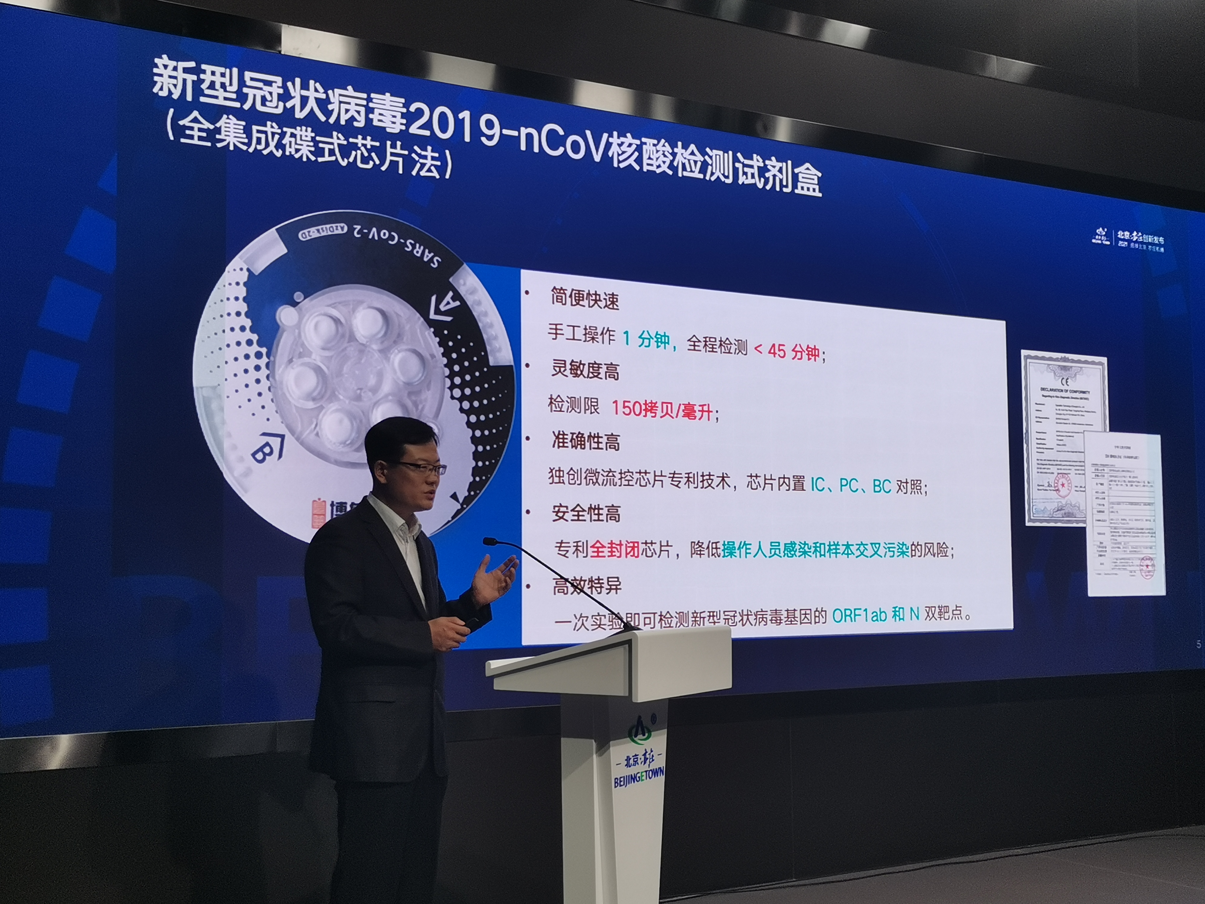 博奧晶典科研辦主任任軍向記者表示,這一全集成芯片實驗室系統檢測靈敏度可達150拷貝/毫升,處於行業領先水準,且只要接通220V民用電或啟動車上自帶的發電機就可以正常工作,試劑和配套儀器均已獲得國家藥監局應急審批批准。他指出,該款全集成碟式芯片是專利全封閉芯片,可降低操作人員感染和樣本交叉污染的風險。「目前,抗疫『輕騎兵』已經由北向南輾轉奔波了數千公里,在安徽、廣東等疫情防控一線中持續貢獻抗疫科技力量」。他亦透露,公司已經完成pre-IPO融資,下一步會準備正式IPO。