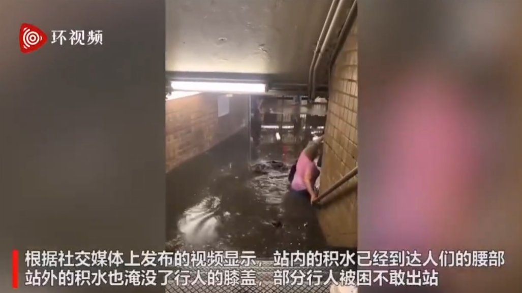 當地時間7月8日下午,熱帶風暴「艾爾莎」逼近,美國紐約遭遇暴雨。當地大量雨水灌入地鐵站,一度在地鐵站內形成「地鐵瀑布」。根據社交媒體上發布的視頻顯示,站內的積水已經到達人們的腰部,站外的積水也淹沒了行人的膝蓋,部分行人被困不敢出站。