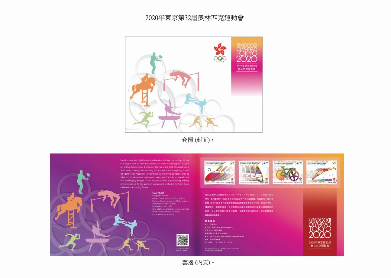 大公文匯全媒體報道,第32屆奧林匹克運動會將於7月23日至8月8日在日本東京舉行。香港郵政今日(9日)宣布,舉行當日(23日)將發行以「2020年東京第32屆奧林匹克運動會」為題的特別郵票及相關郵品,包括首日封及套摺等,藉此祝願香港運動員在今屆運動會上取得佳績。