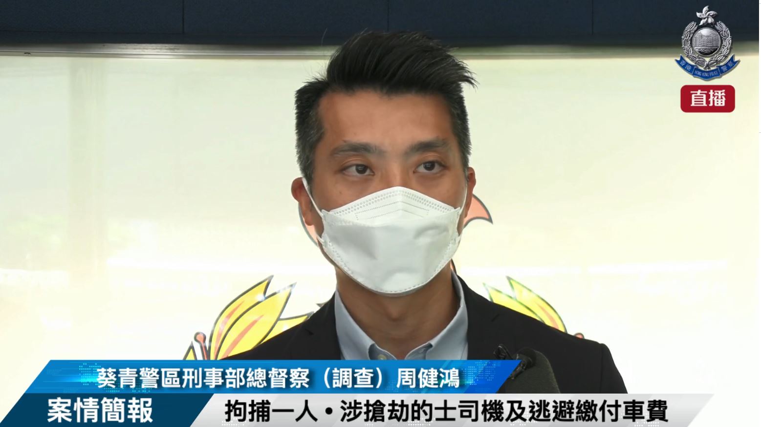 警方其後接手調查,翻看案發現場附近閉路電視錄影片段,鎖定一名目標男子,在昨日(8日)下午到葵涌區一酒店內將涉案29歲姓張男子拘捕,涉嫌「搶劫」、「逃避繳付車費」罪,並在酒店房間檢獲部分涉案現金和疑犯犯案時所穿衣物。