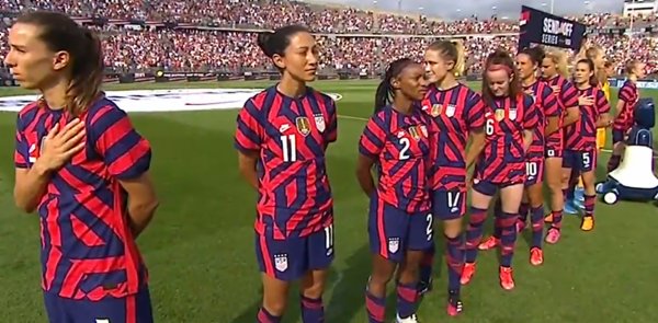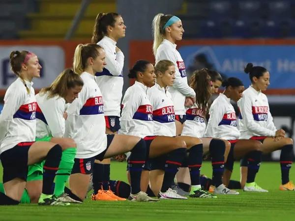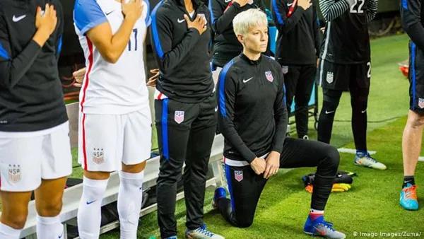 2019年11月,美國國家女子足球隊11名球員中有9人在奏國歌時單膝跪地。今年1月,11名球員中有7人在比賽前奏國歌時單膝跪地。