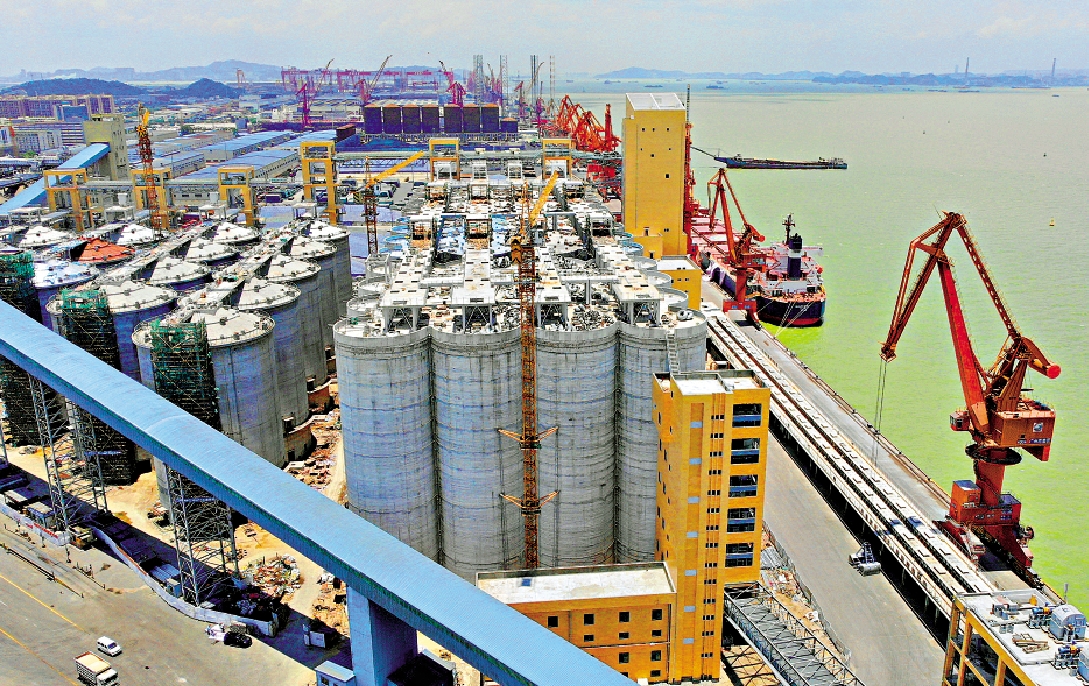 近期,滿載5萬噸小麥的糧食散貨船「中糧東南」輪靠泊新沙碼頭11號泊位,標誌着廣州港新沙港區二期工程正式具備靠泊能力。廣州港新沙港務有限公司副總經理董文澤表示,總投資約25億元(人民幣,下同)的新沙二期工程建成後,新沙港區與周邊糧油企業形成從倉儲物流到生產加工「一條龍」的產業鏈發展格局,確保用糧企業供應鏈順暢。