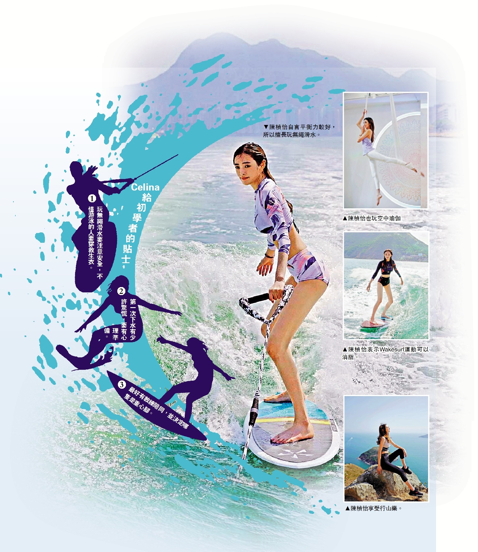 (大公報記者 文霏霏)夏日炎炎,正是玩水上運動的季節。演藝界也有不少女藝人熱愛玩水,就像2020年港姐亞軍陳楨怡,談吐斯文,皮膚白皙,但原來她十分好動,亦熱愛做運動。最近陳楨怡經常玩近年流行的Wakesurf(無繩滑水)及Paddle Boarding(立槳衝浪),尤其是前者。今期「明星AB面」,她分享玩這種水上運動的心得,以及需要注意的事項。
