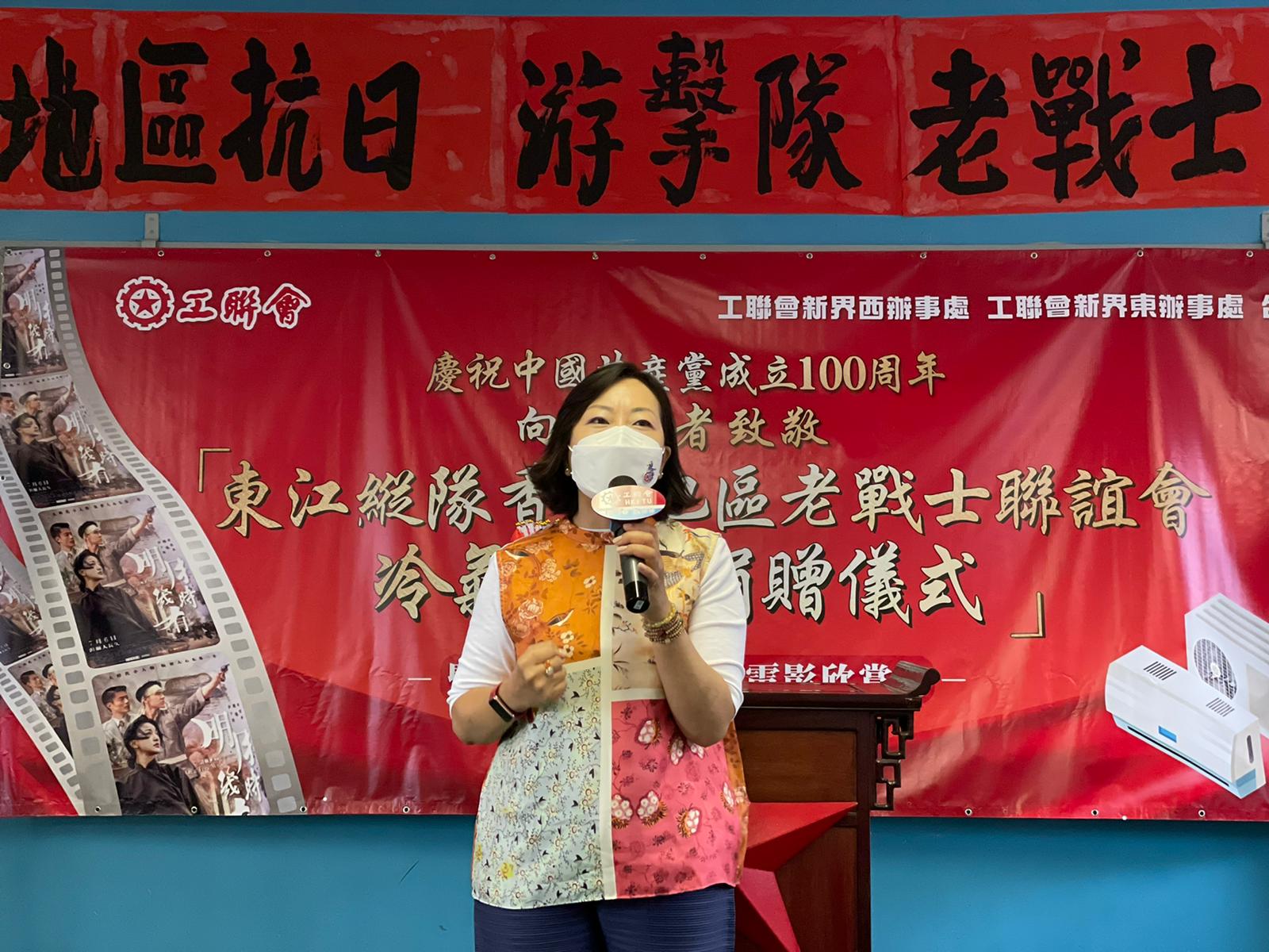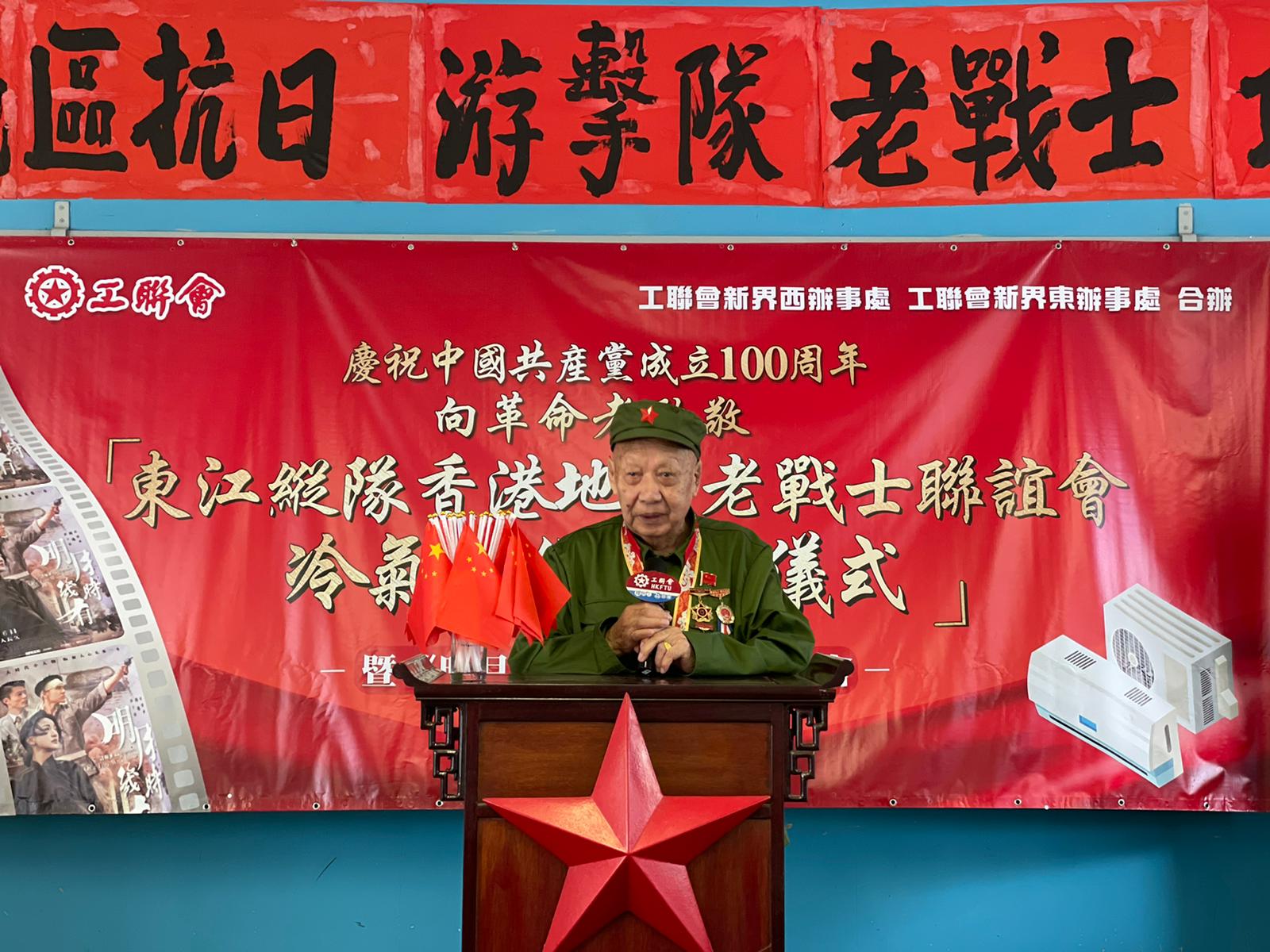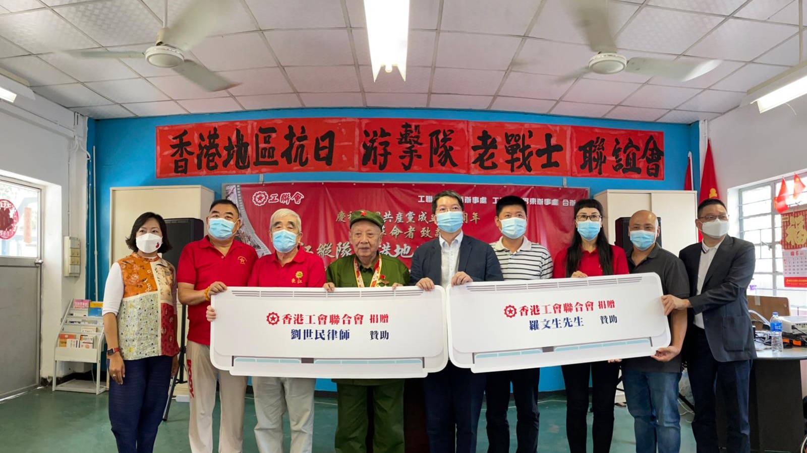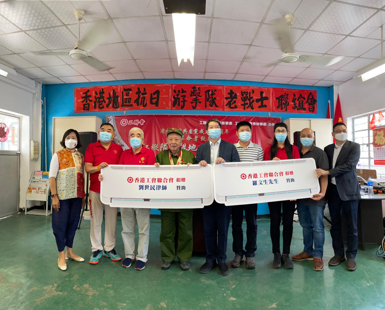 大公文匯全媒體報道,今年是中國共產黨成立100周年,亦是香港回歸祖國24周年,香港各界多個團體舉行慶祝活動。工聯會今日(11日)舉辦「慶祝中國共產黨成立100周年向革命者致敬」活動,向東江縱隊香港地區老戰士聯誼會捐贈冷氣設備,活動於東江縱隊香港地區老戰士聯誼會大棠會址進行。