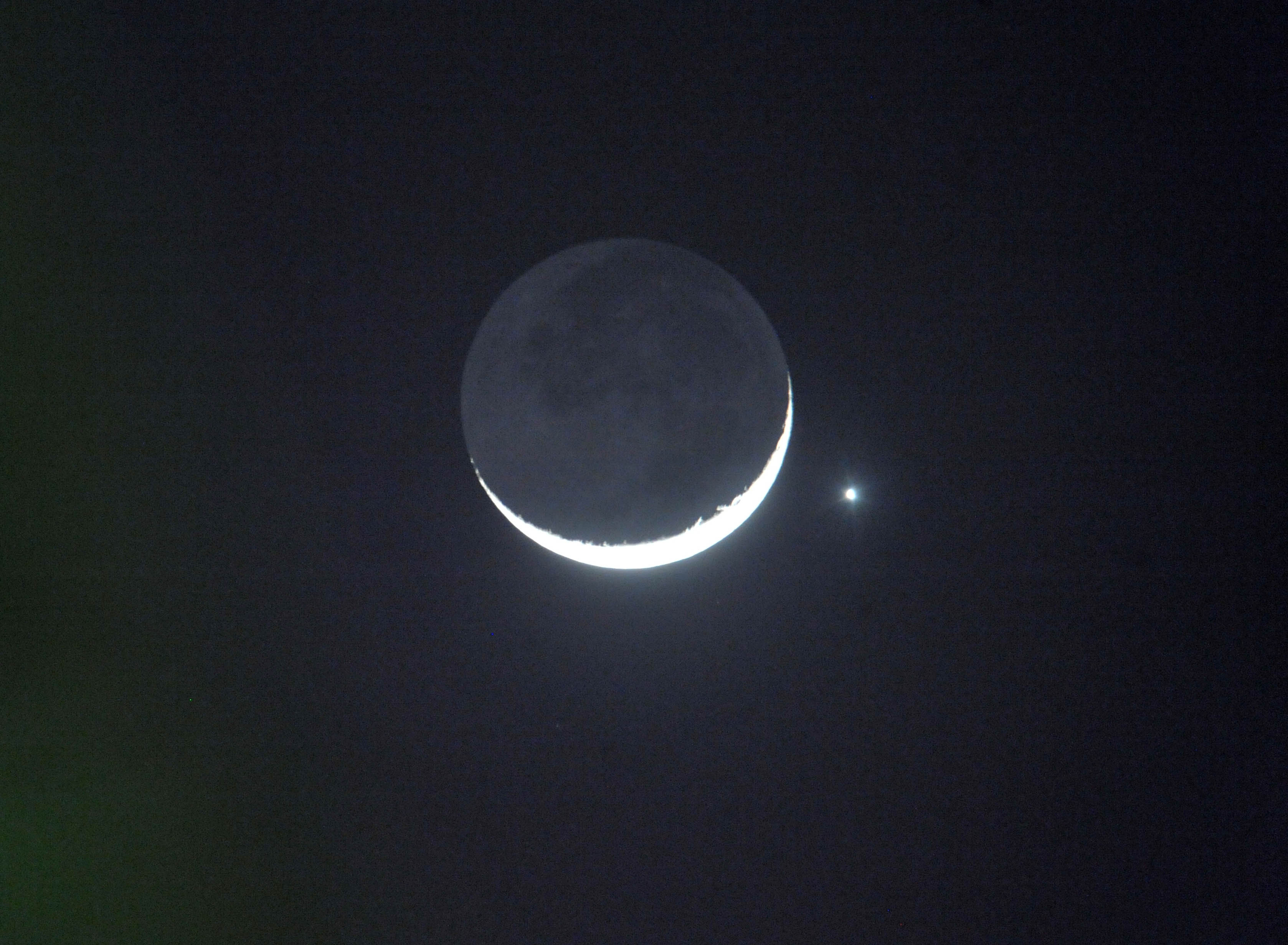 屆時,金星璀璨奪目,左側則是火星。雖然火星相比之下明顯暗淡很多,但是金星與月亮會組成「金星合月」的美麗景觀。