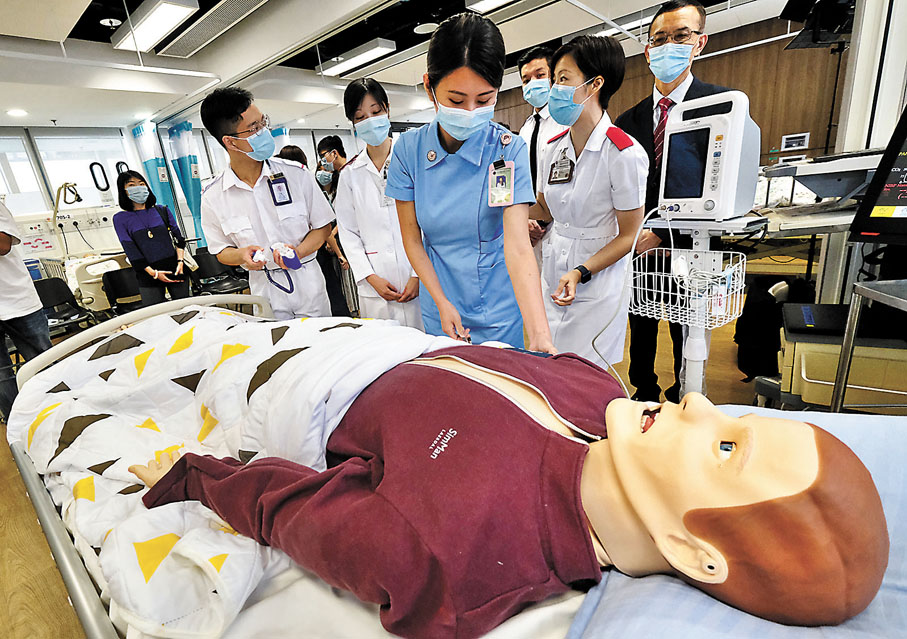 明愛專上學院設有三處模擬場景,包括普通病床、家居劏房和VR病房,模擬病人的假人可調節各項生命體徵,或比真實病人更具挑戰性,上述三間護校的學生均可到場上堂。
