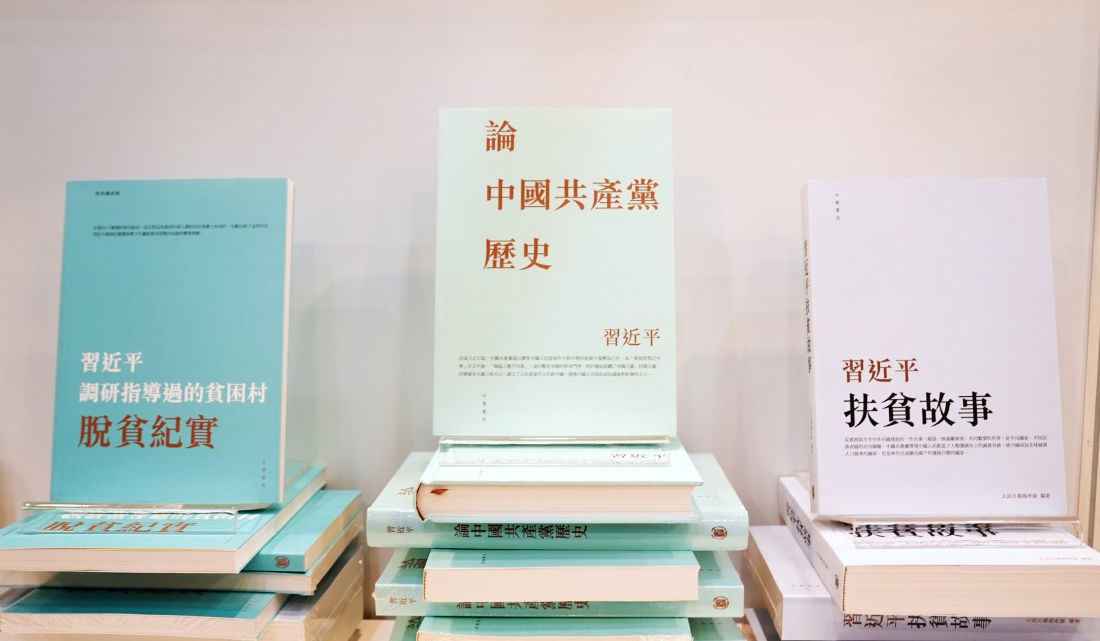 大公文匯網報道,由聯合出版(集團)有限公司屬下中華書局(香港)有限公司出版的習近平《論中國共產黨歷史》、《習近平調研指導過的貧困村脫貧紀實》及《習近平扶貧故事》三本著作繁體中文版,今日(14日)在2021年香港書展上展示與推廣,同時在港澳逾百家實體書店及電商平台上銷售。