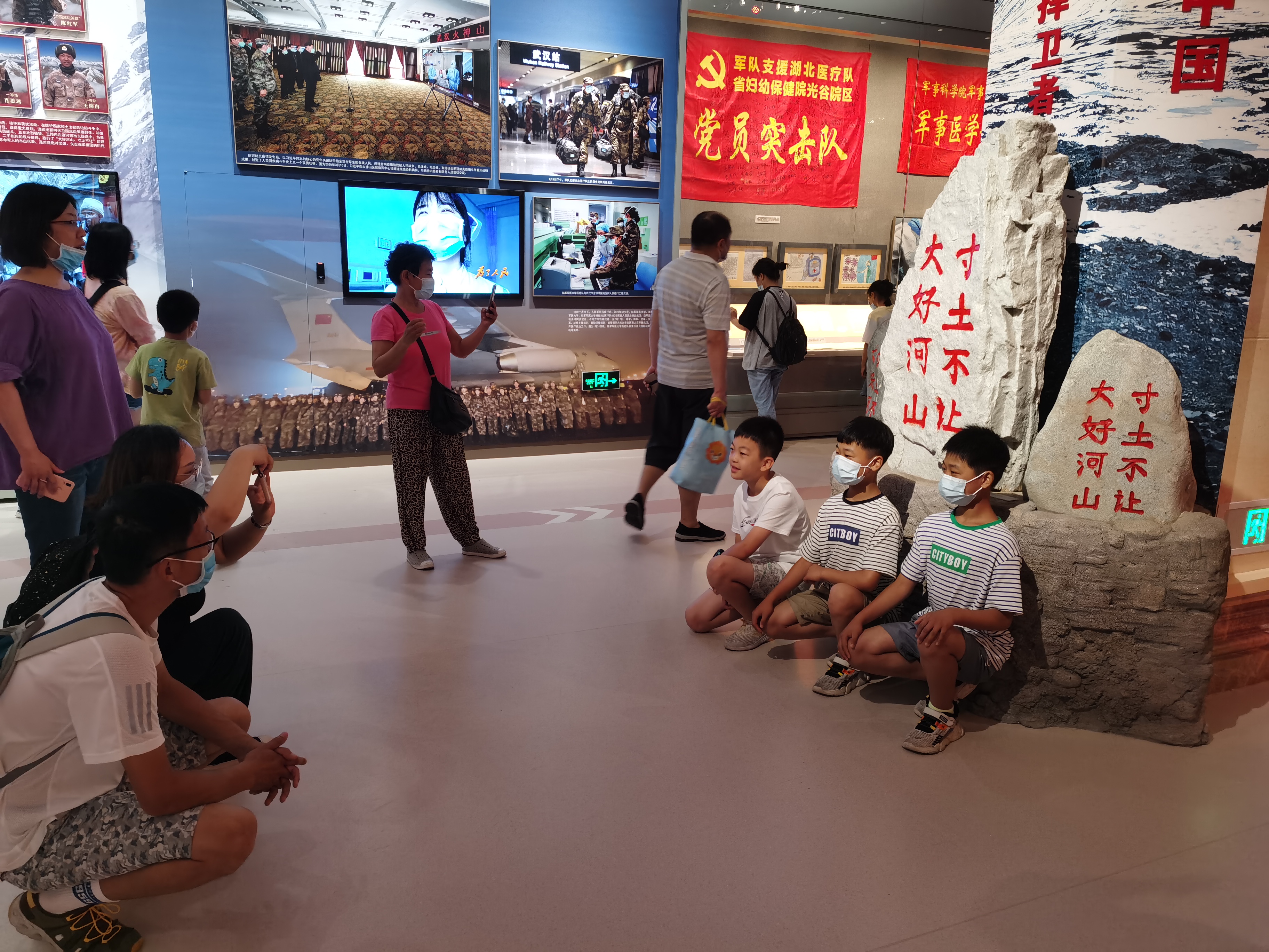 軍事博物館微信公眾號「微軍博「發布的視頻顯示,衛國戍邊一等功獲得者肖思遠的父親肖勝松7月1日參觀了展覽,他隨身帶着兒子穿着軍裝的照片,並將兒子照片取出與刻有」大好河山 寸土不讓」八個大字的喀喇昆崙山石合影。參觀全程,這位父親一直強忍着淚水,他在留言簿上深情寫道,「我為我兒子驕傲,軍人有軍人的職責,思遠,我想你。」