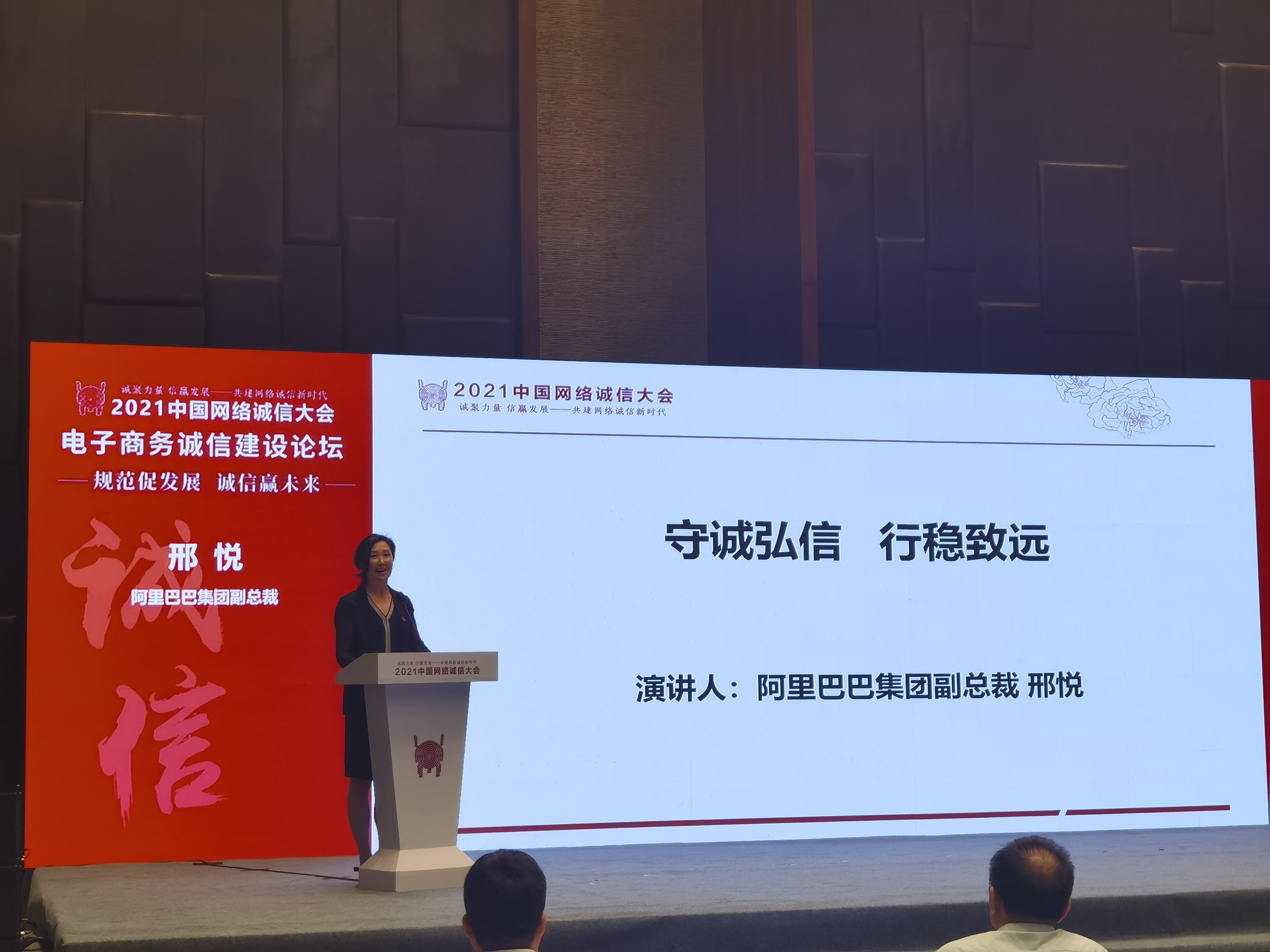 (大公文匯網記者 姚進 長沙報道)7月15日下午,2021中國網絡誠信大會電子商務誠信建設論壇在長沙召開。阿里巴巴副總裁邢悅在論壇上以「守誠弘信 行穩致遠」為標題作主旨演講。