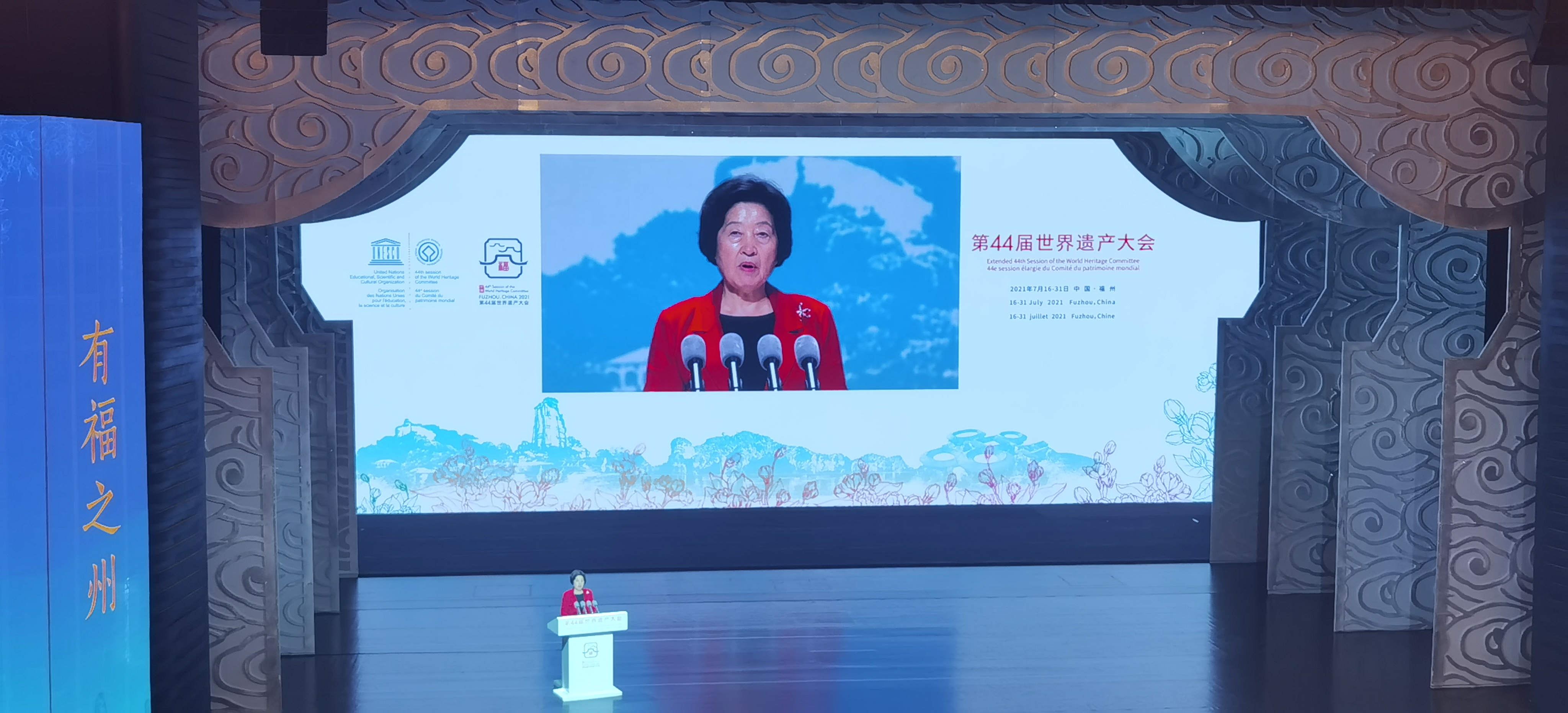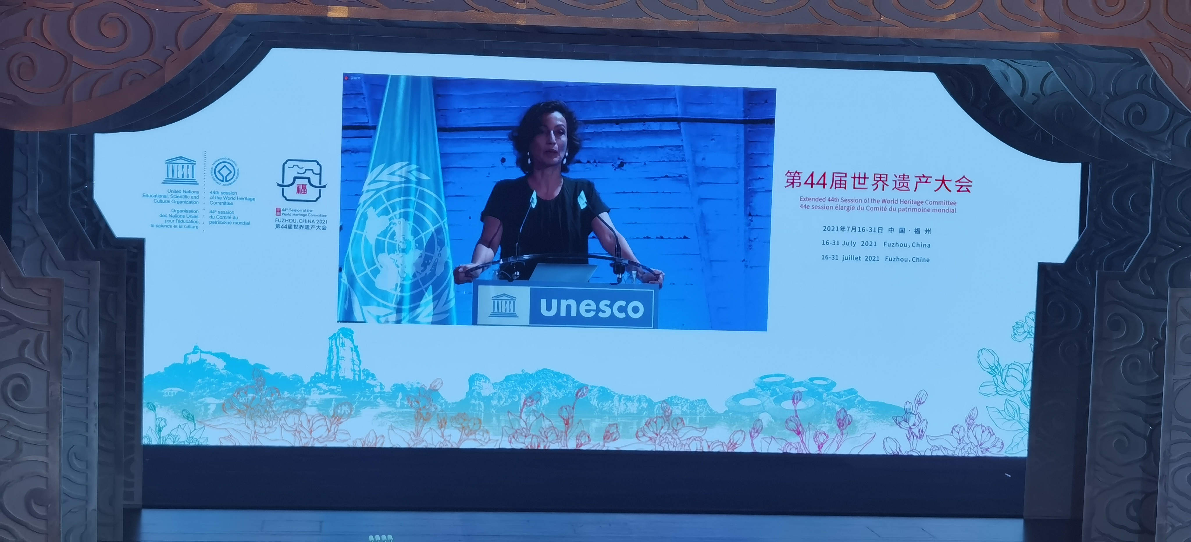 聯合國教科文組織總幹事奧德蕾·阿祖萊在第44屆世界遺產大會致辭時亦表示,這一次的會議非常重要,大家有共同的責任來保護世界遺產,世界遺產是人類的珍寶。她從巴黎遠程也向福建人民致敬,福建人民守護了諸如武夷山、土樓等不少世界遺產,武夷山承載了人類與自然環境的平衡,福建土樓則是泥土建築的城堡,是非常有創新性主題的建築。「我們很快就會慶祝1972年通過的公約50周年,這次大會給大家更好審視公約執行情況的機會,也讓我們重新評估我們面臨的新挑戰。」