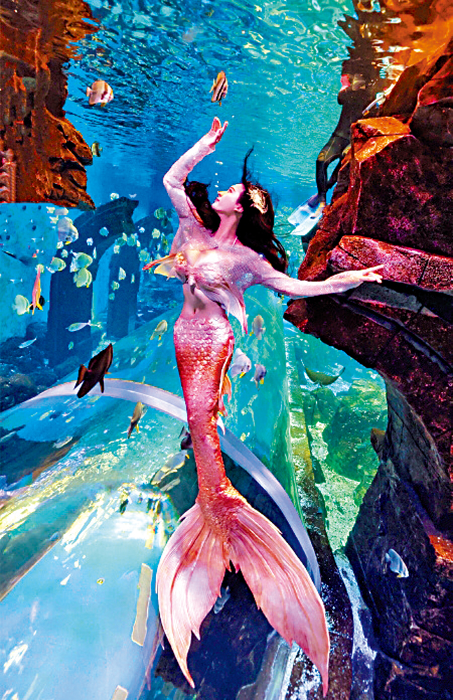 (大公報記者 俞 晝)近年來,水族館、海洋館愈加受到親子出遊的歡迎。與此同時,美人魚表演這項職業也悄然興起,吸引越來越多的年輕人加入其中。在童話故事裏,具有神秘色彩的美人魚被賦予了浪漫氣息,成為人氣極高的夢幻形象。如今,身着定製的人魚尾巴,潛入水中與海洋生物伴游,既是商家吸引客流的手段,也成為了許多愛美女性的夢想。