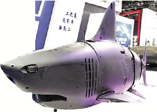 智能化無人潛航器是繼無人機和無人車之後,無人裝備的又一重點發展領域。日前第七屆軍博會首次展出智能「仿生鯊魚」無人潛航器(圖)。「仿生鯊魚」逼真模擬鯊魚的外形和游動方式,分為1.85米長的1850A型和2.2米長的2200A型兩種子型號。在水下環境,僅憑肉眼觀察難以分辨,極具生物欺騙性。