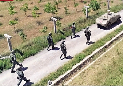 近日,陸軍邊海防學院組織學員開展智能化實彈演練,無人打擊車、無人機蜂群亮相演兵場。演練中,無人戰車前方行進,並在陣地上充當火力壓制點,引導和保護山貓突擊車和步兵分隊。