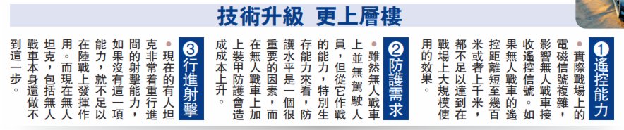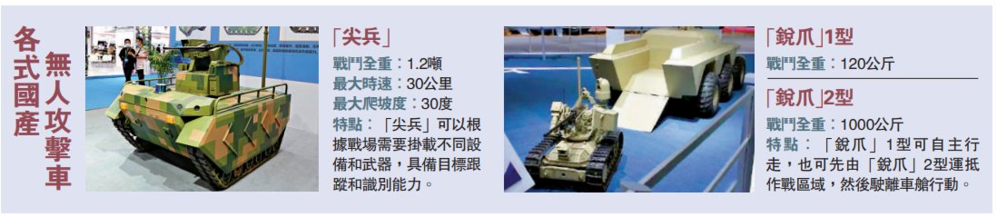 在此前解放軍於東南海域舉行的多兵種聯合立體渡海登陸演習中,無人機、無人破障艇、無人伴隨支援戰車、無人彈藥車等新銳作戰力量共同組成「無人兵團」,極大提高了立體攻防、突擊登陸能力。