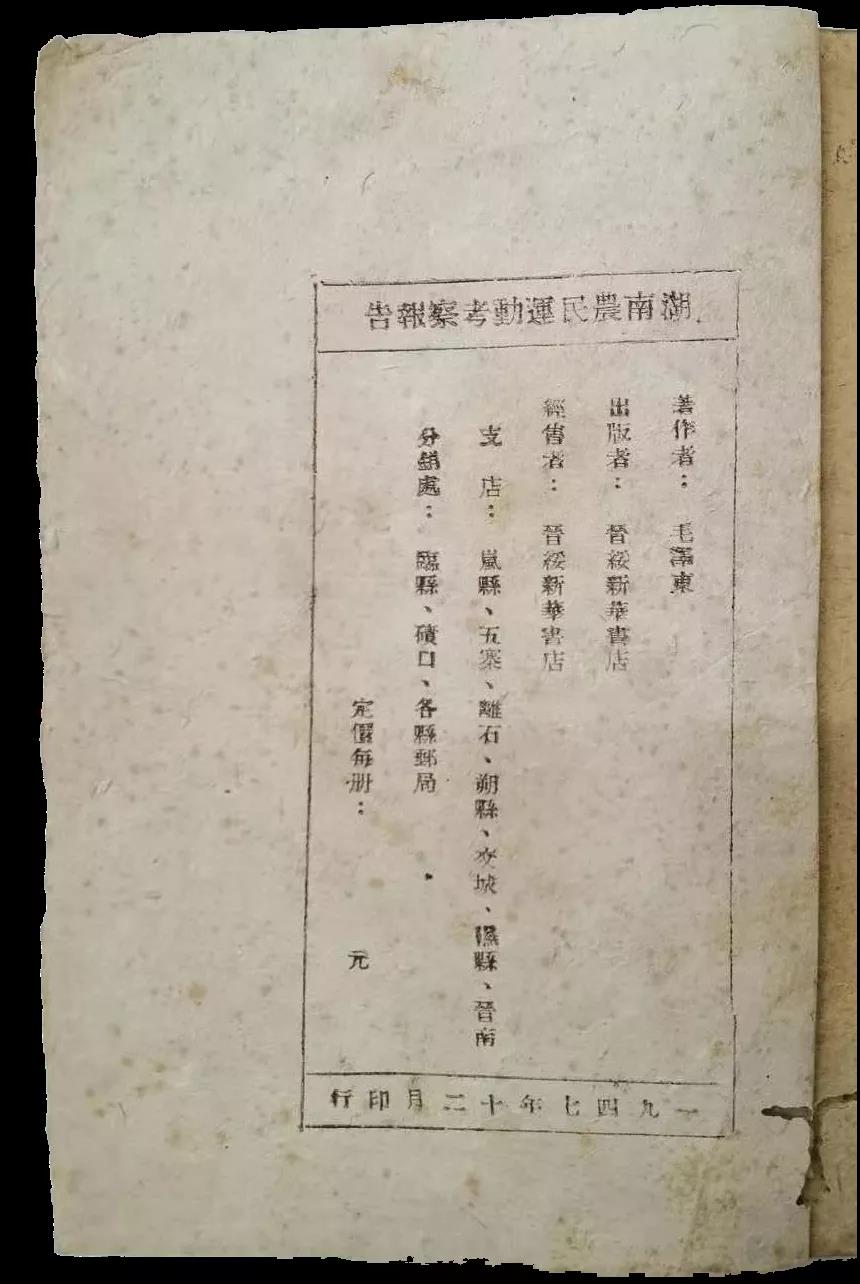 會後,毛澤東以中共中央委員、中央農民運動委員會書記和國民黨中央候補執行委員的身份,開始考察湖南農民運動。1927年1月4日至2月5日,毛澤東在國民黨湖南省黨部監察委員戴述人等人的陪同下,身着藍色長衫,腳穿布鞋,手拿雨傘,步行1400里,考察了湘潭、湘鄉、衡山、醴陵、長沙5縣的農民運動。行經的路線是:1月4日乘船到湘潭縣城,5日到達銀田寺,6日抵韶山,10日經楊林到湘鄉大坪,11日至湘鄉縣城,14日至橫鋪肖家沖,15日進入衡山白果,17日抵福田,18日到宋橋,20日到衡山縣城,24日返省城,27日赴醴陵縣城,31日至醴陵東富寺,2月1日(舊曆正月初一)上午回縣城,下午至龍鳳庵,2日至淥口,3日返回長沙,5日到長沙東鄉板倉。他每到一處,都認真聽取共產黨地方委員會,國民黨縣、區黨部、工會、農協、婦女、青年、商會等群眾團體的匯報,邀請有代表性的農民及從事農運的同志開調查會,同時,也找懂得「三教九流」的下層人士、縣衙門的小職員、開明紳士等交談。他以甘當小學生的精神向農民請教,口問手記,展開同志式的討論,細心傾聽群眾呼聲,認真觀察農運實情,及時解決農運中的問題。