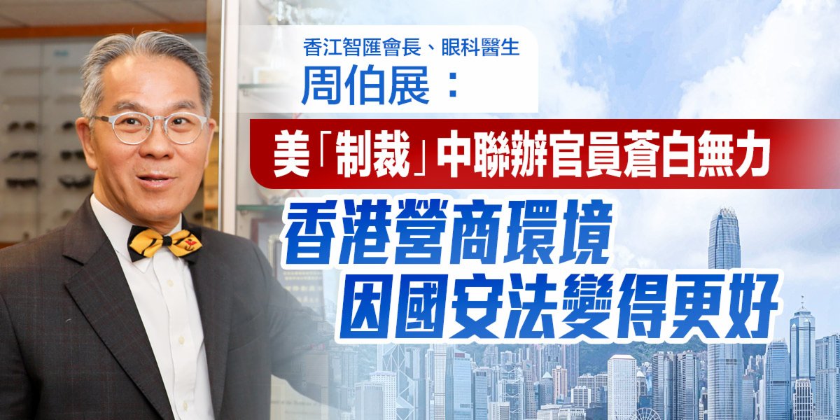 (大公文匯全媒體記者 楊新雨)美國政府繼去年8月對11位治港官員進行「制裁」後,近日(16日)進一步無理「制裁」中聯辦7位副主任,並向美國企業警告在港「營商風險」。民間智庫「香江智匯」會長、眼科醫生周伯展今日(20日)接受大公文匯全媒體專訪時表示,美方「制裁」並不令人意外,實為壓制中國的崛起,其措施蒼白無力,對香港不會產生任何影響,對此感到好笑。周伯展引述中聯辦主任駱惠寧的話,「可以給(時任)美國總統特朗普寄100美元,以供其凍結之用」,充分顯示出中方官員對於美方「制裁」毫無畏懼,且用自己的幽默感展示出我們泱泱大國的風度。