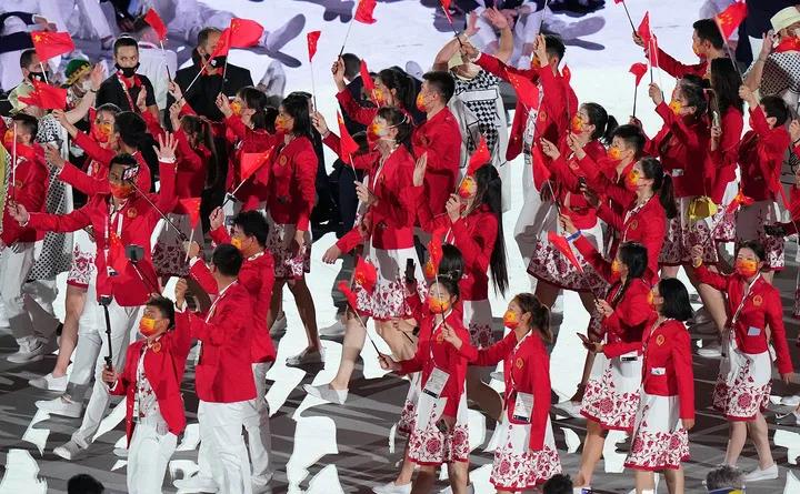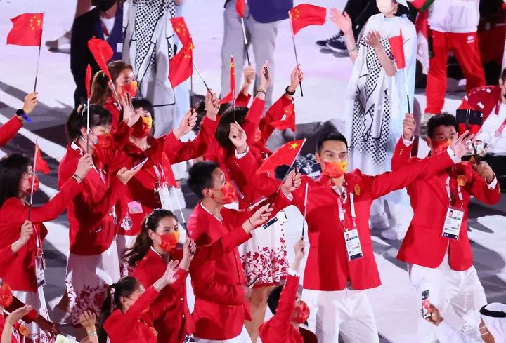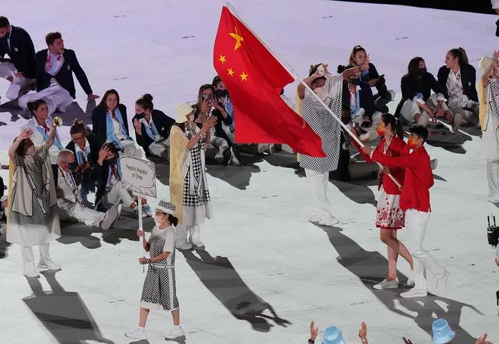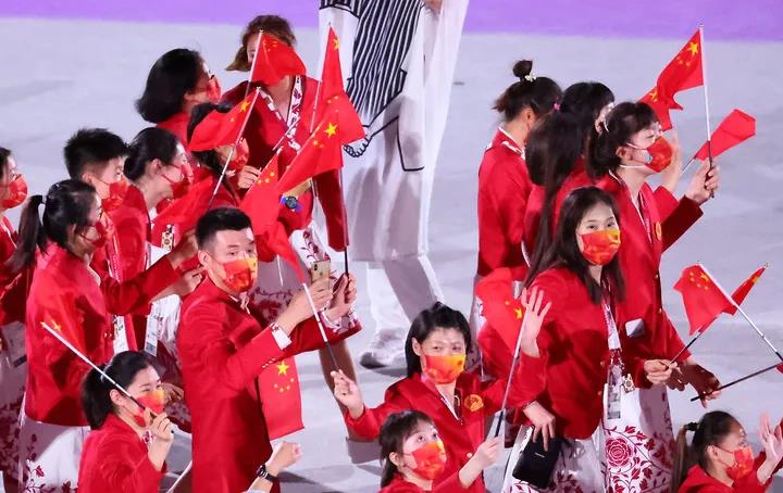 本屆東京奧運會中國代表團的旗手是朱婷和趙帥,中國代表團共有777人,其中運動員431人共報名參加除衝浪、棒壘球和手球之外的30個大項225個小項的比賽。