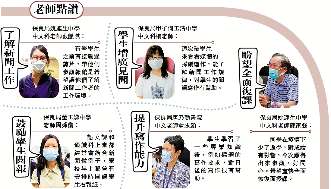 今次到訪的學校分別是保良局姚連生中學、保良局唐乃勤書院、保良局甲子何玉清中學及保良局董玉娣中學,共有34名師生到訪《大公報》報館,受到採編人員熱情接待。