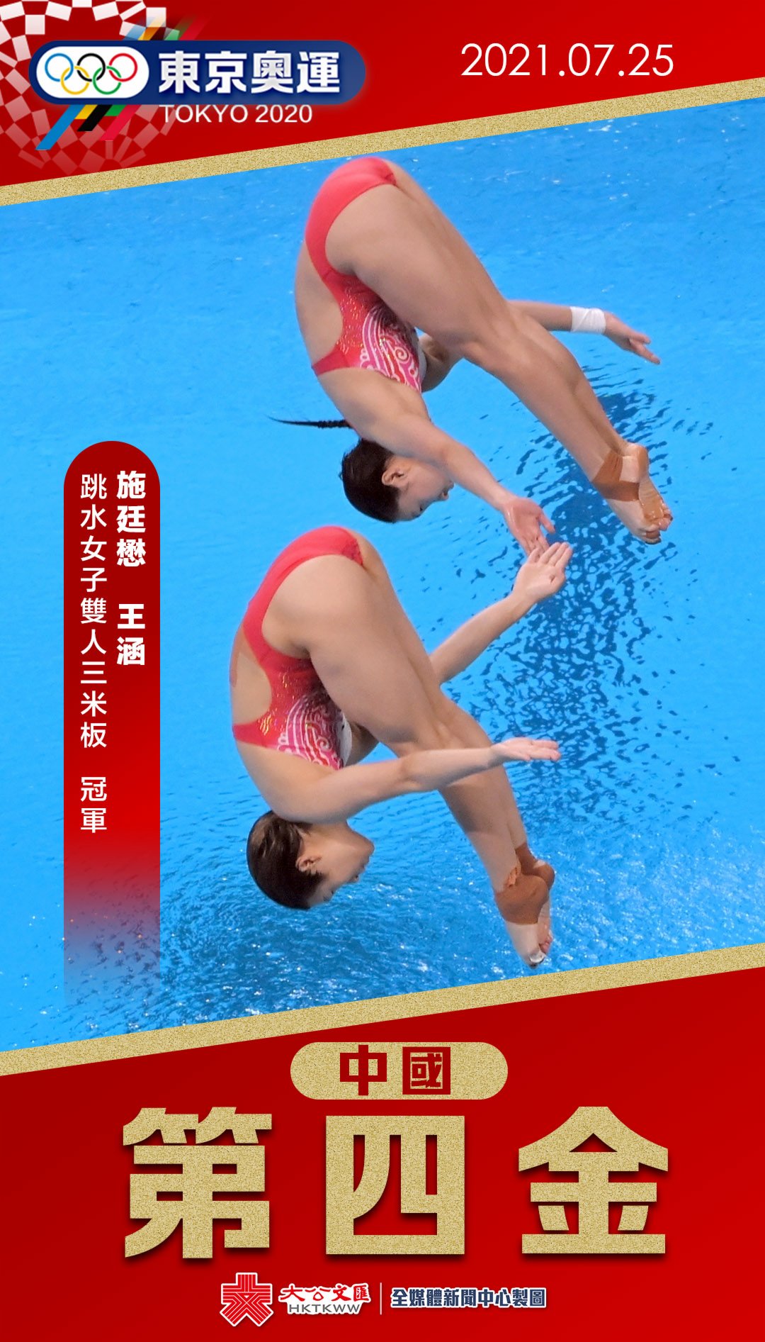 今日(7月25日),跳水女子雙人3米板決賽中,中國跳水名將施廷懋搭檔王涵,以總分326.40成功奪金,幫助中國跳水隊取得東京奧運開門紅的同時,實現在該項目五連冠壯舉。