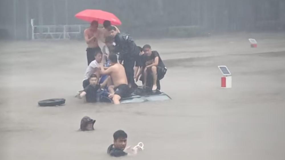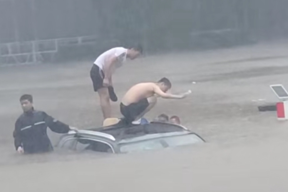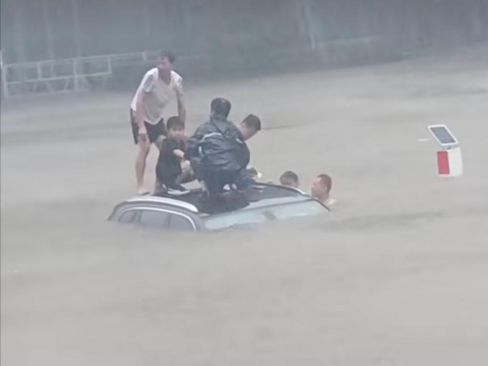 這兩天,一條不到2分鐘的視頻在朋友圈和多個短視頻平台廣泛傳播。鄭州大雨中,一輛黑色SUV被困在路中,就在洪水快要沒過車頂,千鈞一髮之際,眾人向汽車游去,大家爬上車頂,砸破車窗,救出2個孩子和1個大人,並用水桶將孩子成功運送到了安全地帶。