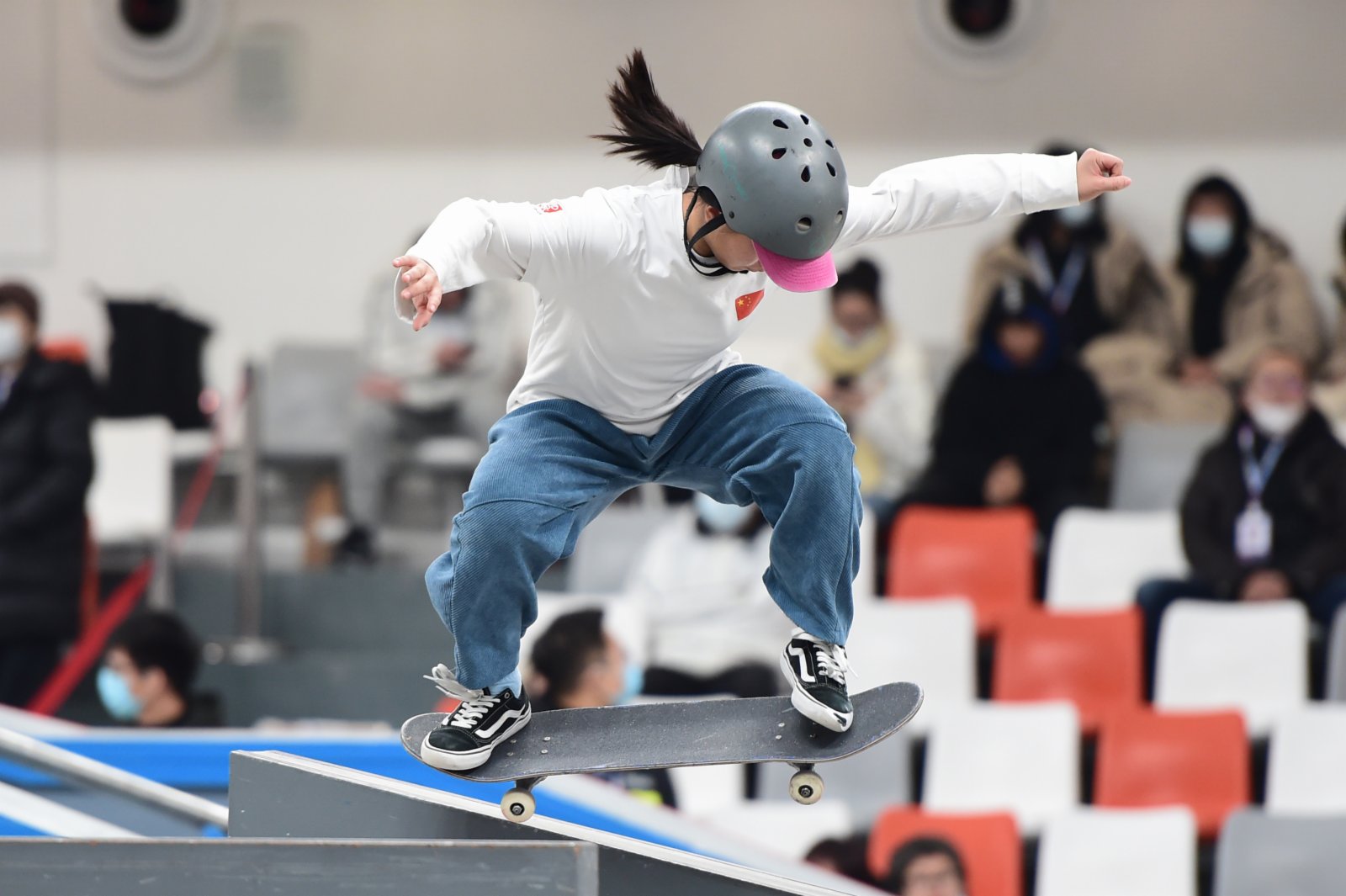 直到基礎的動作學完,教練開始教授高難度動作和銜接時,曾文蕙這才體會到,滑板項目最需要的是膽量。「第一次下大桿的時候,我站在那裏哭了半個小時,害怕。」在教練、隊友的鼓勵下,曾文慧學會了一個又一個高難度動作,大賽成績也水漲船高。