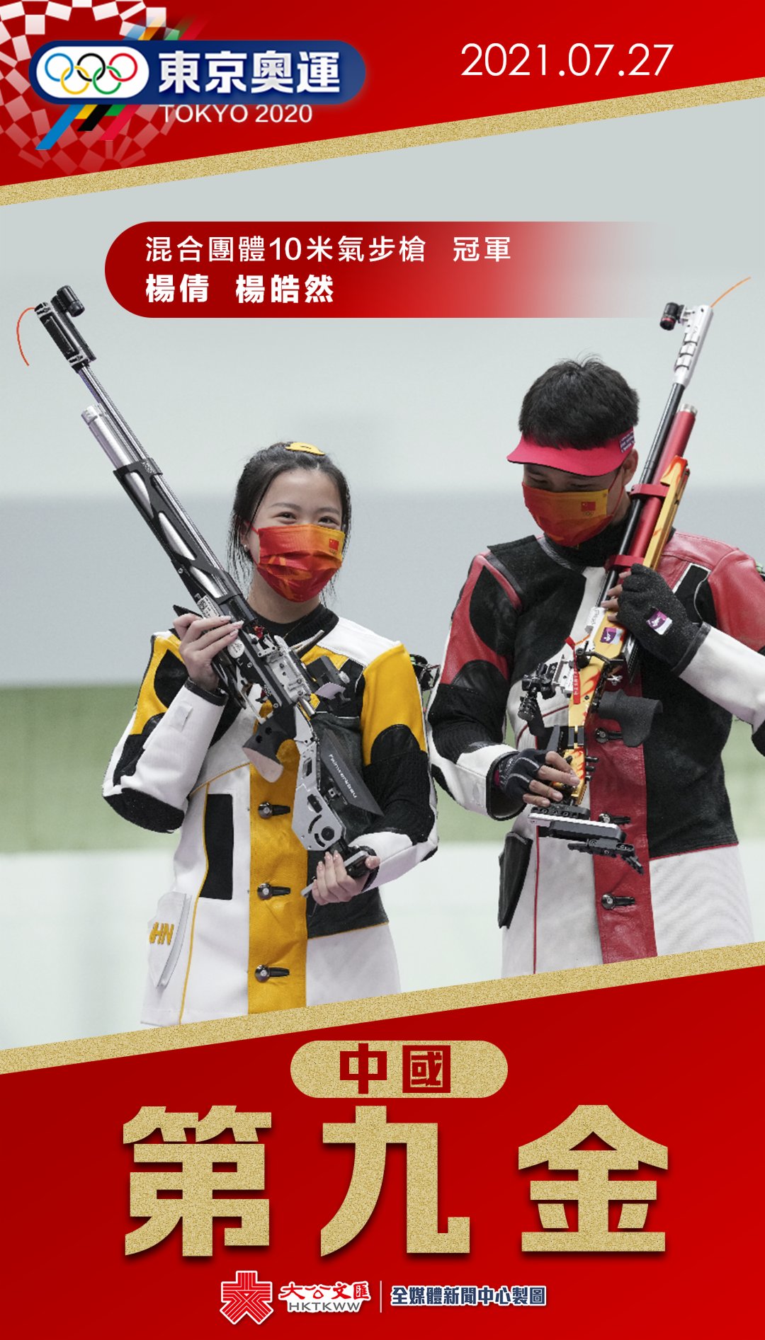 今天(27日),東京奧運會混合团体10米气步枪金牌赛在朝霞射击场舉行,中國選手楊倩/楊皓然力克美國隊奪得金牌,恭喜中國射擊隊再奪一金!