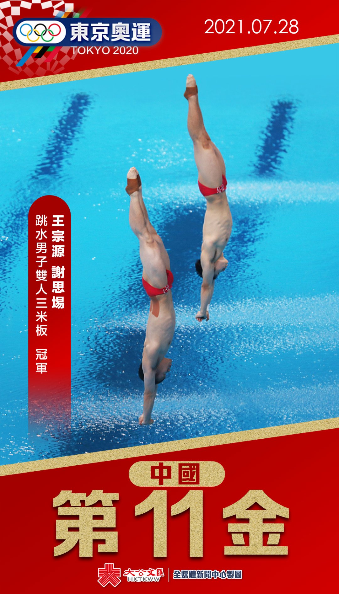 第十一金!王宗源謝思埸獲男子雙人3米跳板跳水決賽金牌