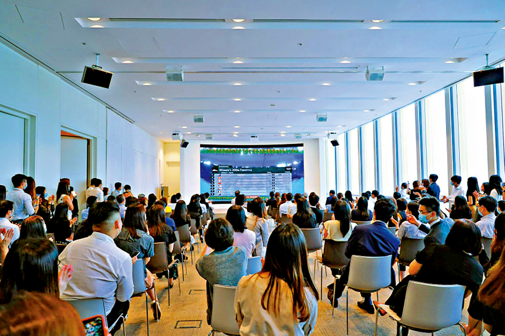 為支持女飛魚出戰,據悉金管局昨晨向員工發內部電郵,讓大家一起到56樓看比賽直播。據金管局社交網站發布的圖片,金管局總裁余偉文亦有到場,更坐在第一排睇直播,為何詩蓓打氣。貼文形容,見證詩蓓衝線一刻,「大家都特別肉緊」兼大讚何詩蓓「你真係好叻女呀」。