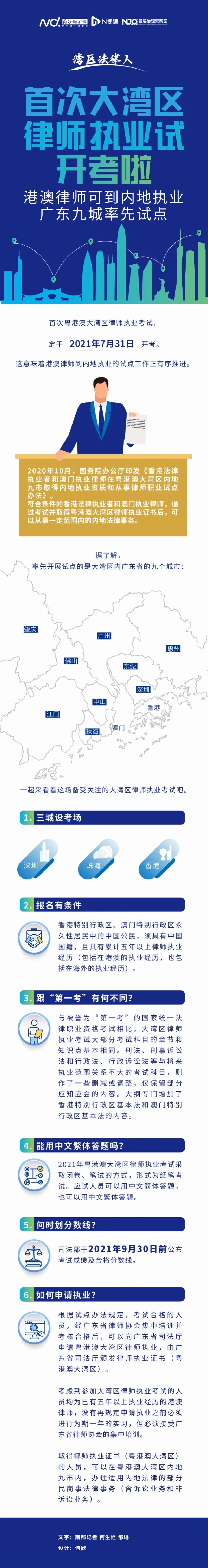 緊接着,國務院辦公廳於2020年10月5日印發《香港法律執業者和澳門執業律師在粵港澳大灣區內地九市取得內地執業資質和從事律師職業試點辦法》。