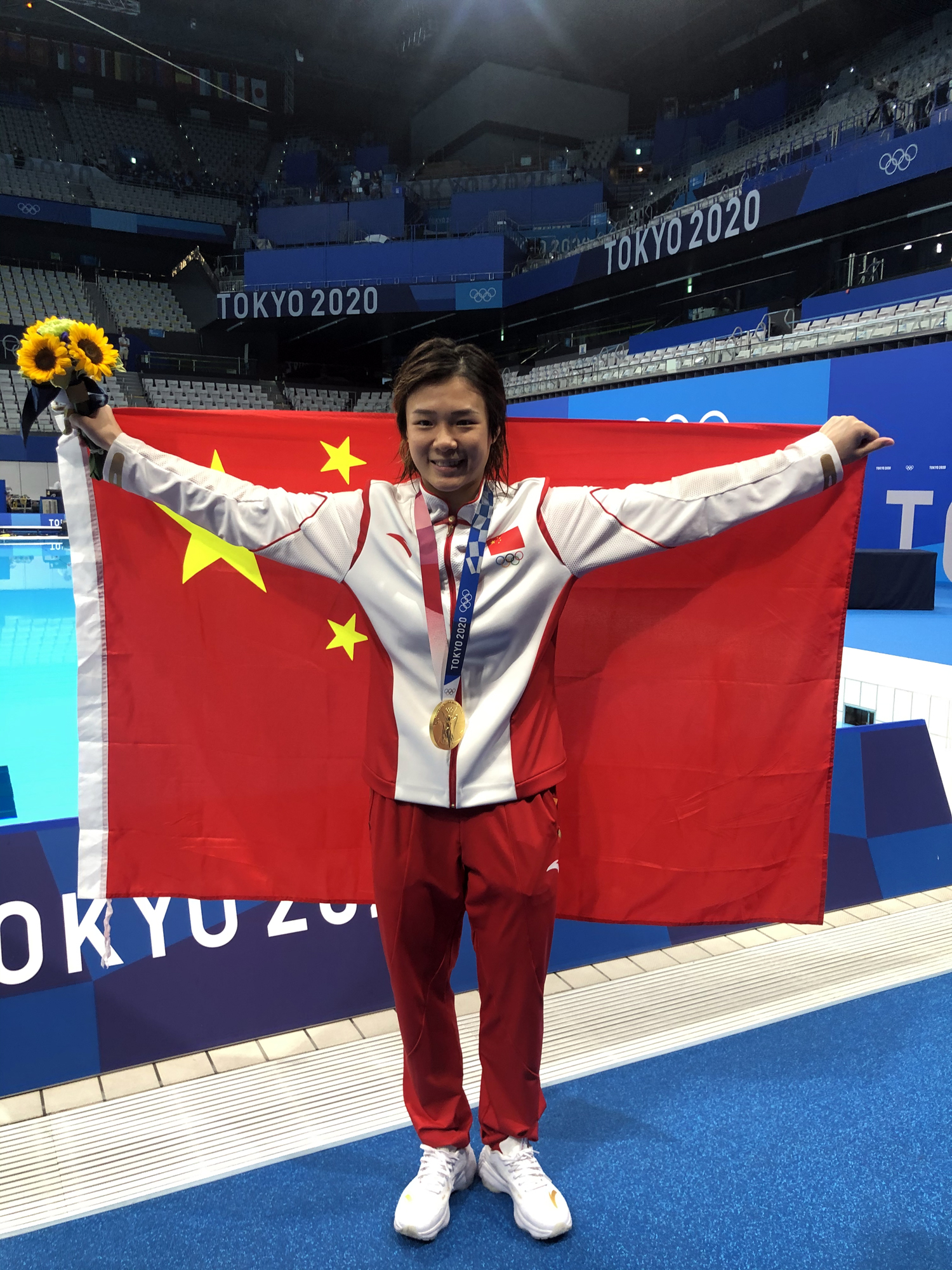 最後一跳結束後,施廷懋用毛巾捂面,喜極而泣。對此,她表示,「等這一刻等得太久了,是一種釋放,拿下這一塊金牌自己很滿意了。希望人生道路上也能像跳水一樣,創造出更多輝煌的成績。」