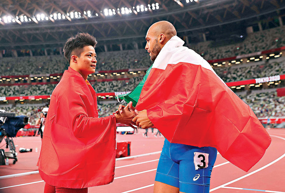 本月尾便32歲的蘇炳添賽後受訪時未有顯得太失望:「這麼多年,想要接觸不同水平的運動員和其他的國外運動員,在他們身上去學習。通過這麼多年來的努力,自己終於可以站在百米(決賽)的跑道上,我覺得我完成了自己的夢想,也實現了中國田徑歷代的前輩對我們的祝福。今天是一輩子最好的回憶。今天的成績應該說沒有讓大家失望,希望在幾天後的接力比賽繼續帶來中國速度。」