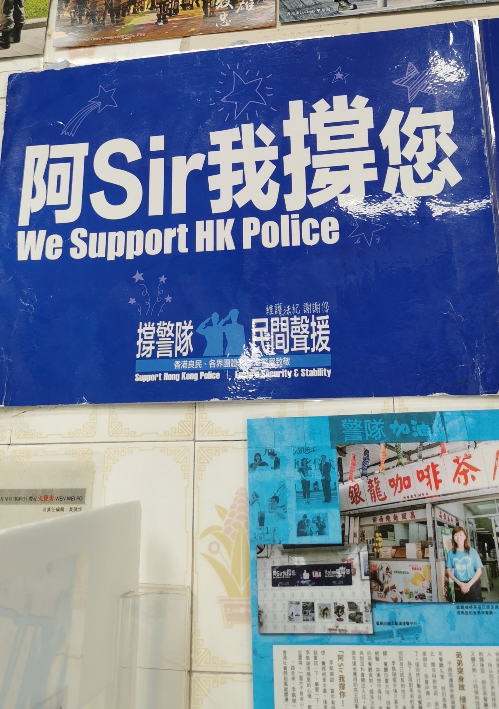2019年6月30日,李凱瑚參加香港市民萬人撐警大會,在集會上領了這三張海報。那天雨很大,沒帶雨具的她捨不得把海報頂在頭上遮雨,反而把海報塞進衣服護在胸口。回到店裏,她把這三張海報貼在牆上,並在社交媒體上公開支持警察。