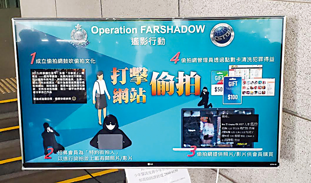 警方網罪科情報組署理警司張偉豪表示,早前在互聯網巡查,發現一個網站鼓吹偷拍裙底及將短片在網上發布。該網站在2017年開始營運,現有逾五萬名會員,上載過的短片和相片超過三萬條。同時發現網站要求會員在公眾地方,包括港鐵、商場偷拍,並標榜偷拍材料中可見事主樣貌,藉此增加銷量和瀏覽次數。