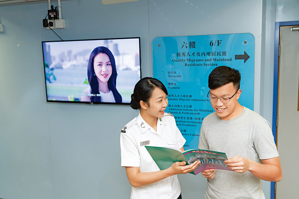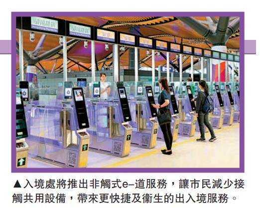 「以人為本」是入境處的服務理念,藉着加強創新科技的應用並不斷檢視服務流程的細節,以達至盡善盡美。面對持續肆虐的冠狀病毒病,入境處在不同服務透過數碼科技加入「防疫元素」,以配合政府的公共衞生措施及回應市民對防疫措施的關注,包括於今年底推出的非觸式e-道服務,以容貌識別技術代替現時的指紋識別技術,在現有的傳統櫃枱和e-道服務外,供合資格的市民選用。在簽證方面,入境處於今年3月首推「智傭易」服務,並在7月提升該服務。申請續聘外傭的僱主在簽證獲批後,可使用電子方式繳付簽證費用,並透過掛號郵件領取簽證。新服務讓僱主及外傭能安坐家中輕鬆辦證,有效減少市民出行和人群聚集。此外,入境處將於今年年底全面採用電子化簽證申請模式及簽發電子簽證,讓申請人可在網上完成整個申請程序。