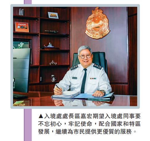 適逢入境處於今年成立60周年,區嘉宏指入境處的初心,就是為香港的安定繁榮作出貢獻:「回望過往60年,入境處一直保持觸覺敏銳、因時制宜,職能持續擴大、不斷完善,由初期執行出入境管理的『守門人』角色,逐漸轉型為服務市民人生各階段不同需求、協助優化人口藍圖和提升香港競爭力等多方面職能。」