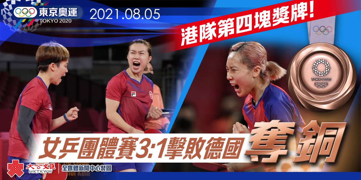大公文匯全媒體報道,東京奧運港隊再傳捷報,港隊組合杜凱琹、蘇慧音、李皓晴,今日(5日)在乒乓球女子團體賽反勝德國對手,勇奪銅牌。香港特區政務司司長李家超在社交平台發文祝賀,讚揚她們在比賽中發揮卓越水準和攻防戰術,並充分展現奮力拼搏的體育精神。李家超指出,該面銅牌是港隊今屆奧運第4面獎牌,港隊累計奪取1金2銀1銅,是歷來佳績,引以為傲,可喜可賀。