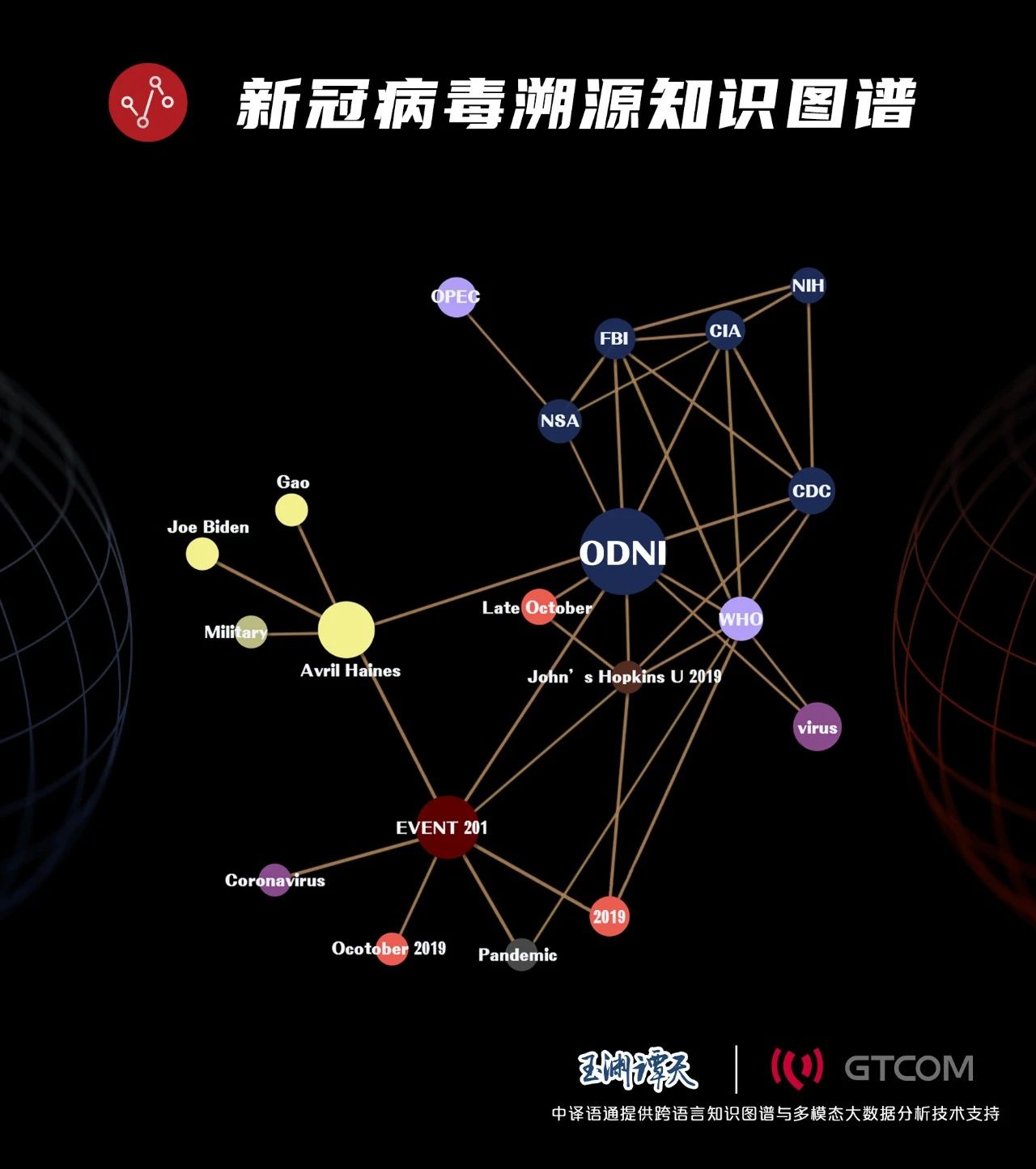 在梳理知識圖譜時,譚主發現,從美國國家情報總監辦公室出發,連接到了一件事,「EVENT 201」。這是一場美國2019年10月組織的公共衞生推演。這場演練,跟新冠肺炎疫情在美國的暴發過程非常相似。